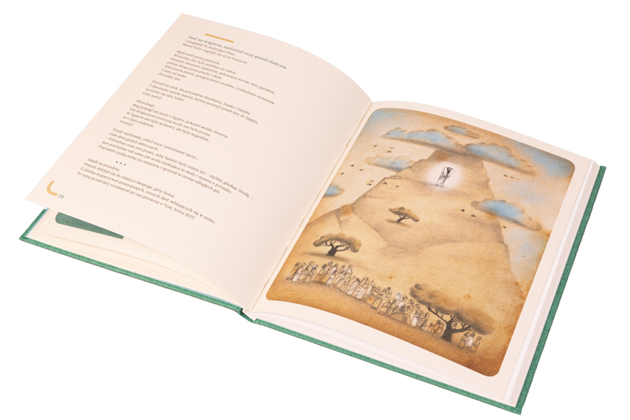 z Noem patrzącym na ciemne wody potopu, z mamą Mojżesza ukrytą w trzcinach Nilu, z uczniami płynącymi łodzią, z Janem Chrzcicielem siedzącym przy ognisku na pustyni. Są blisko. Ich historie dzieją się teraz, nie przed wiekami, to nasze historie. Dzisiaj słuchamy ptaków z rajskiego ogrodu, wybieramy nie ten owoc, idziemy walczyć z tym, co nas przerasta, boimy się spotkania z kimś, kogo oszukaliśmy, zapominamy, dokąd płyniemy i z Kim… Patrzymy na ognisko w ciemności, próbując odnaleźć Tego, który JEST”.
