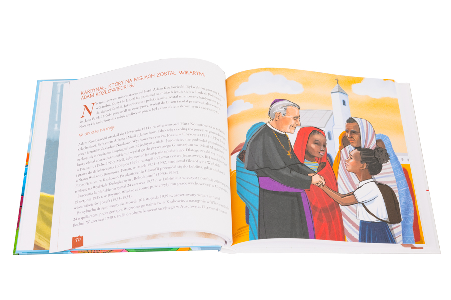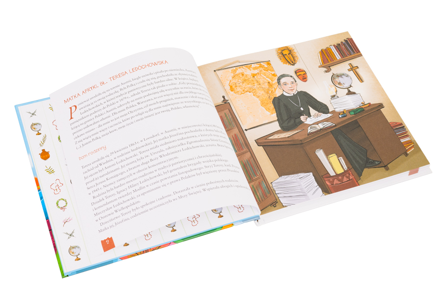 W książce znajdziemy pasjonujące biogramy (Bł. Ks. Władysław Bukowiński, Święty Jan Paweł II, Helena Kmieć, Wanda Błeńska i wiele innych postaci) i mnóstwo ciekawych informacji na temat krajów misyjnych i posługujących tam polskich misjonarzy.