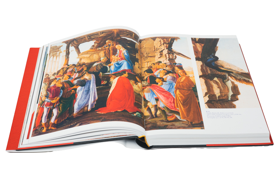 Sandro Botticelli już od pierwszych kroków stawianych w szkole Filippa Lippiego we Florencji stał się najbardziej autentycznym wyrazicielem renesansu drugiej połowy XV wieku. Album prezentuje Czytelnikowi obszerny zbiór największych arcydzieł Mistrza, jak również nieznane malowidła będące przedmiotem dyskusji specjalistów zajmujących się kwestiami autorstwa. Badacz otrzymuje więc sposobność zapoznania się niepublikowanymi dotąd materiałami. Ponadto ilustracje przedstawiające m.in. arcydzieła z bocznych ścian kaplicy Sykstyńskiej pozwalają zagłębić się w zagadnienia tradycyjnie rzadziej poruszane. Bogatą szatę graficzną albumu wzbogacają także rysunki Botticellego do „Boskiej komedii” oraz jego szkice do haftów na szatach liturgicznych. Opowieść autora wieńczy omówienie okresu osobistego przełomu w życiu artysty oraz jego ostatniego etapu stylistycznego. Ta poruszająca lektura uświadamia nam, że mamy do czynienia z Botticellim „Wielkim”.