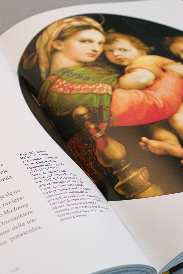 Album przybliża sylwetkę i dorobek wielkiego artysty, uwzględnia też najnowsze badania dotyczące datowania oraz autorstwa przypisywanych mu dzieł. Jest przy tym prawdziwą ucztą dla oka, bo jak podkreśla autor publikacji "przystąpmy do poznawania Rafaela, mistrza nad mistrzami, w sposób, który najbardziej przystoi malarzowi: otwierając bardziej oczy niż uszy".