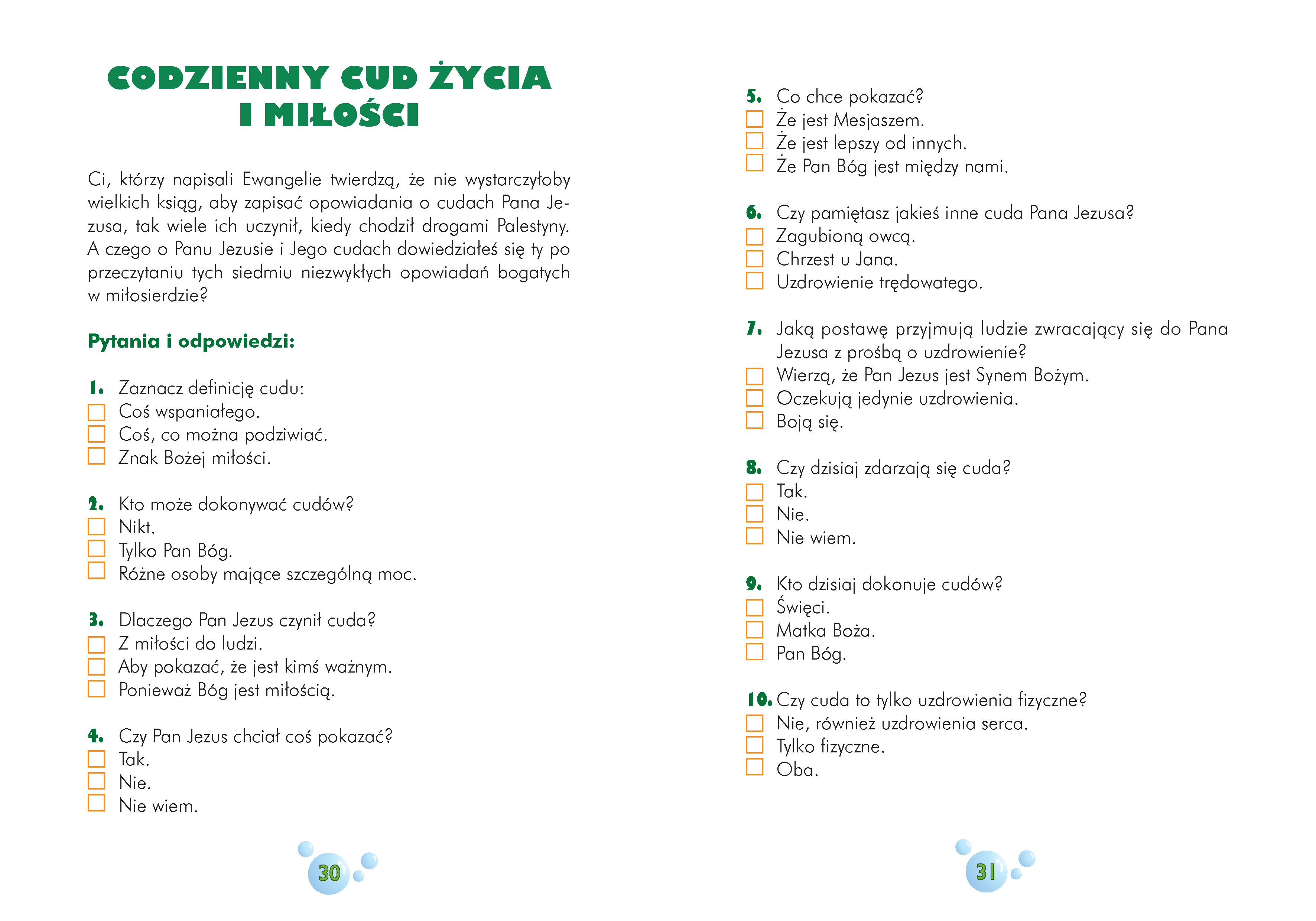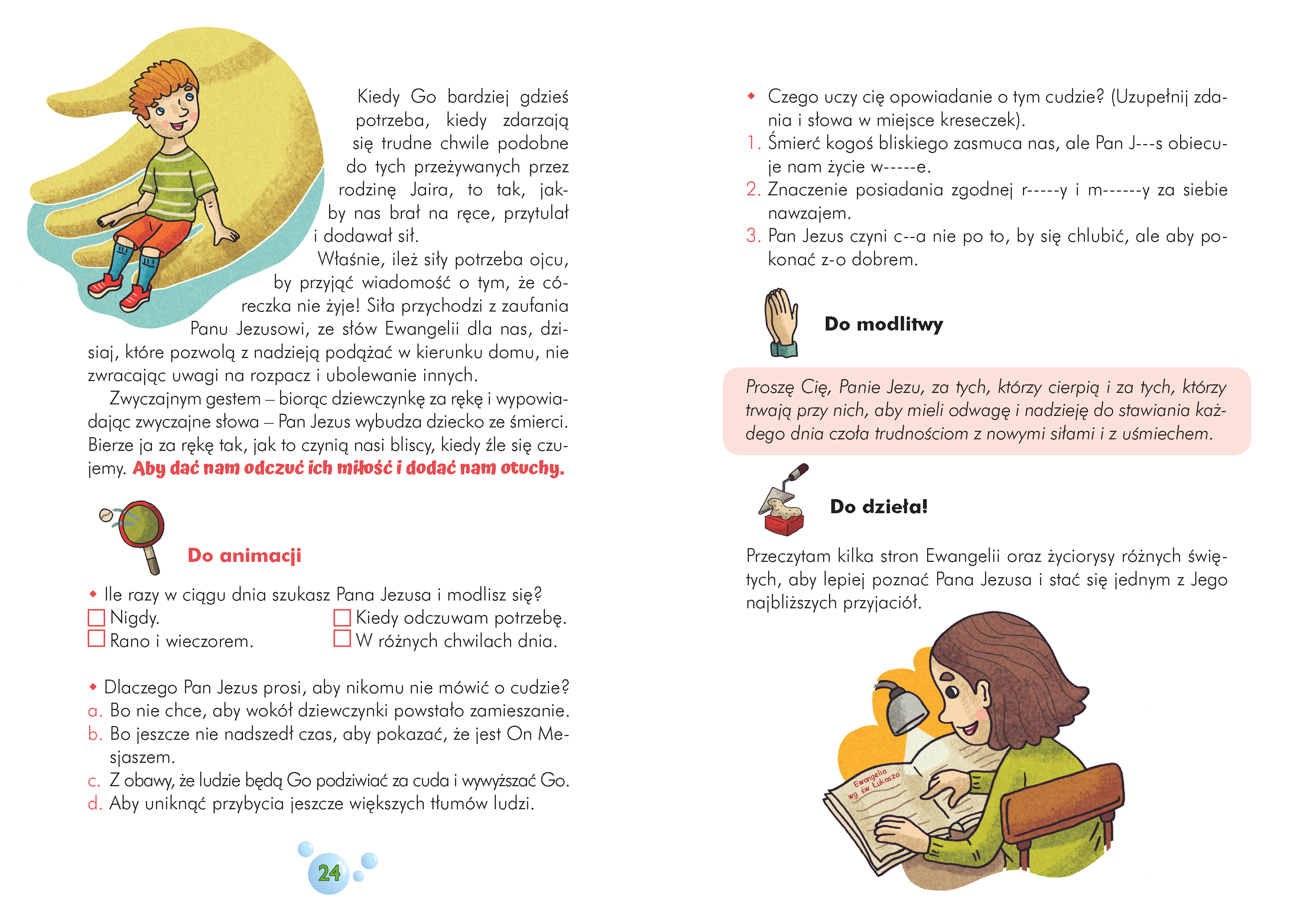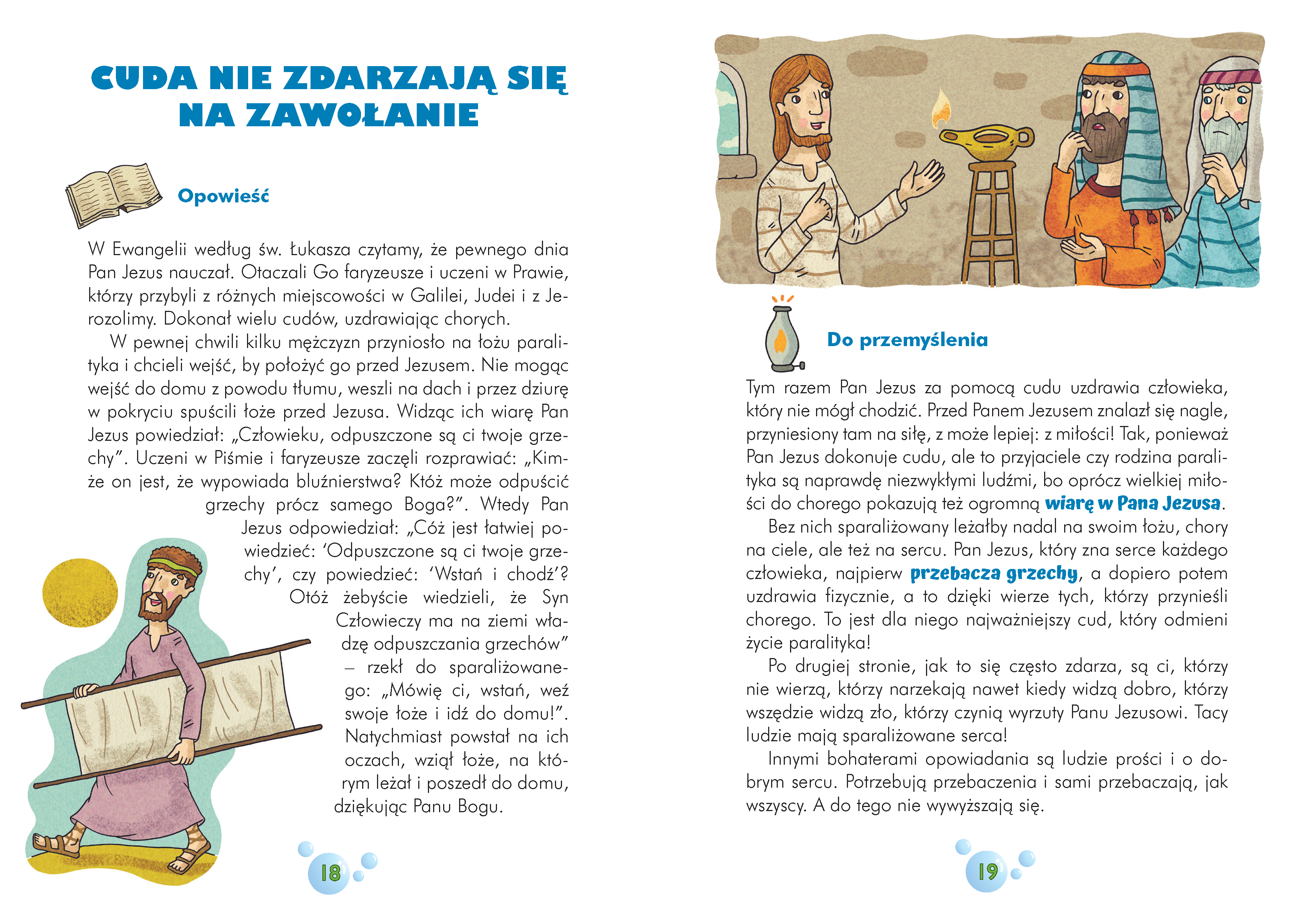 Na jej 32 stronach znajdziemy wiele ciekawych treści, teksty modlitw i liczne aktywności do wykorzystania w domu i na katechezie, które pomogą nam lepiej zrozumieć Dobrą Nowinę i wzrastać w wierze.