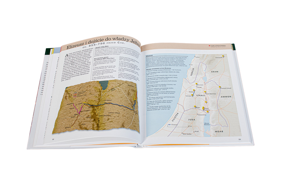 – Jest zakorzenionym w Piśmie Świętym, nowoczesnym atlasem biblijnym, który zawiera ponad 170 szczegółowych map i wykresów, ilustrujących historię Ziemi Świętej od Abrahama do pierwszych wspólnot chrześcijańskich.