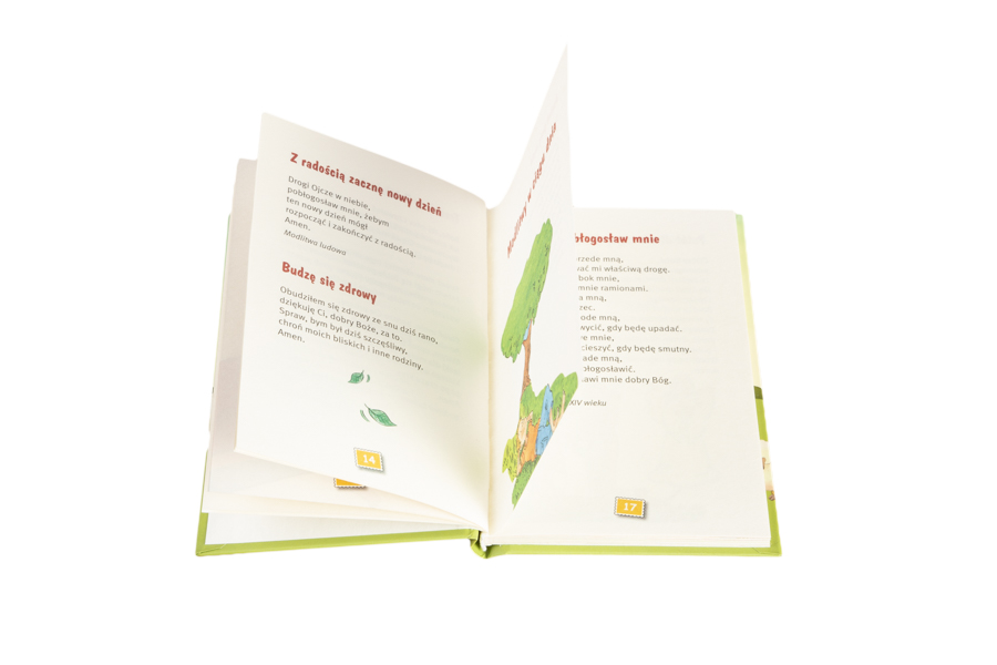 W publikacji znajdziemy modlitwy na poranki i wieczory; modlitwy, które można odmawiać w domu i szkole, przed posiłkami i po nich; modlitwy związane z uroczystościami rodzinnymi i kościelnymi i wiele, wiele innych, pełnych radości wersetów.