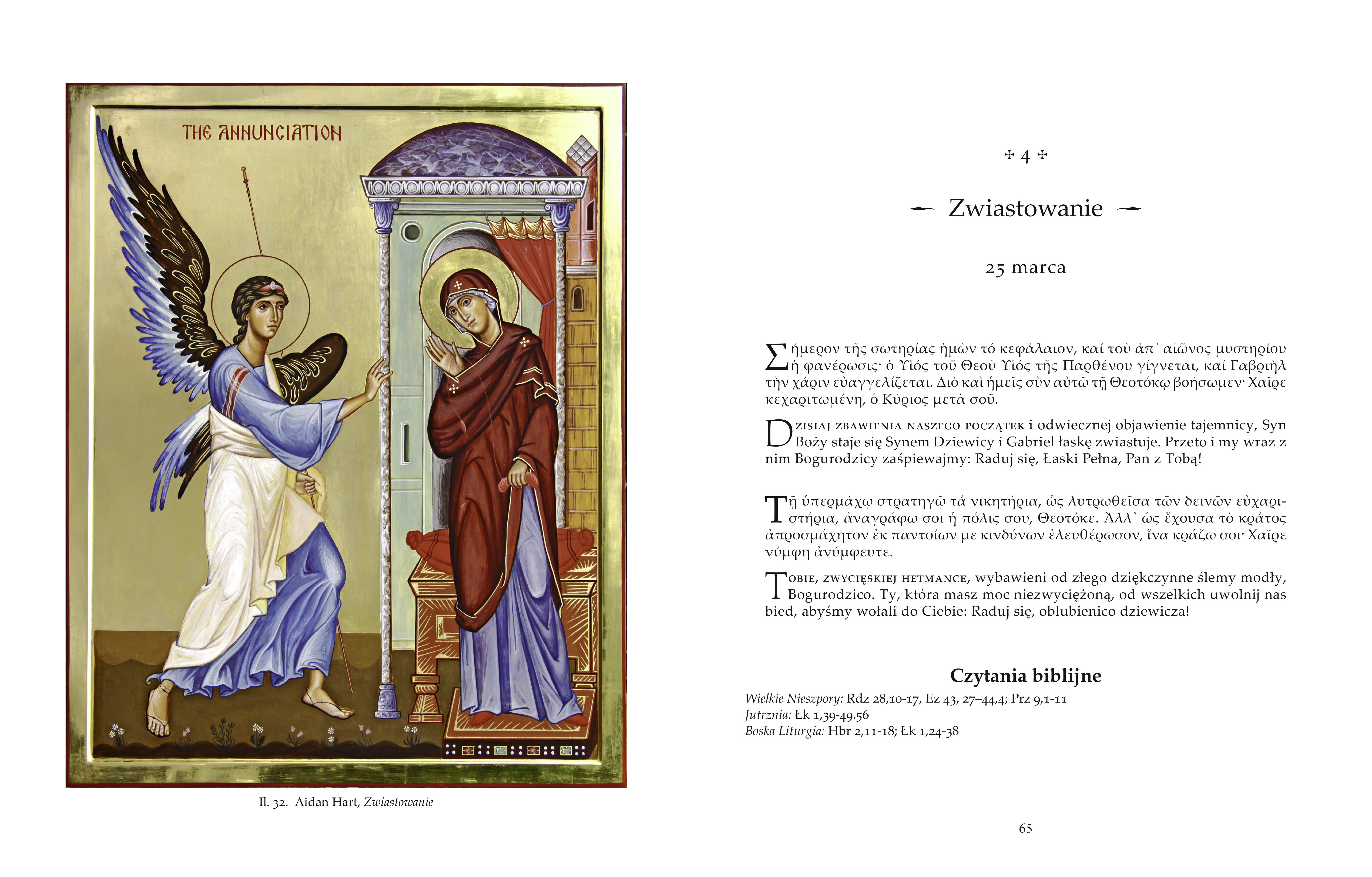 Aidan Hart, znany polskiemu Czytelnikowi jako autor popularnego podręcznika malarstwa ikonowego, tym razem odsłania przed nami tajniki ikon świątecznych, będących nieodłącznymi elementami celebracji świąt prawosławnych. Przedstawia 14 świąt wraz z ich ikonami w perspektywie wielowiekowej tradycji. Każdy rozdział zawiera hymny, tropariony i kontakiony oraz czytania biblijne przewidziane na dane święto, opis upamiętnianego wydarzenia powiązany ze źródłami pisanymi, które się do niego odnoszą, a także historię święta i rozwoju ikon z nim związanych. Całość wieńczy wyjaśnienie symboliki ikony świątecznej, omówienie po kolei wszystkich jej elementów (np. przedstawień magów, pasterzy, gwiazdy, wołu i osła itd.) w nawiązaniu do teologii święta. Z opowieści autora ikona świąteczna wyłania się jako święty przedmiot, używany w liturgii, czczony i całowany, kontemplowany, jako okno do Bożej rzeczywistości, gdzie wszystko jest aktualne, a sama celebracja święta nie tyle jest wspominaniem dawnego wydarzenia, ile jego uobecnianiem, przeżywaniem tu i teraz. I z tej perspektywy Aidan Hart kieruje do nas swój przekaz. Jego książka jest bardziej duchowym świadectwem malarza ikon i człowieka głęboko wierzącego niż naukowym opracowaniem zagadnienia. Dzieli się swoją wiedzą i doświadczeniem z Czytelnikiem i ma nadzieję, jak sam to podkreśla, że dzięki temu kontakt z ikonami będzie dla niego bardziej ubogacający.