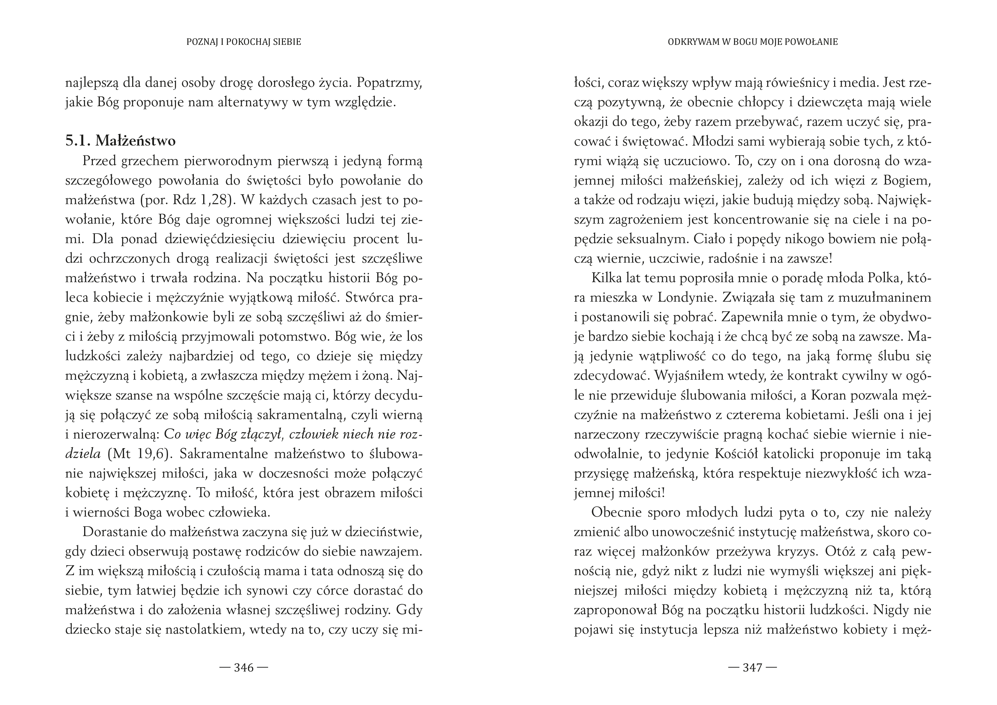 Od dzieciństwa słyszymy o tym, że powinniśmy kochać Boga i bliźnich. Nie wszyscy zdajemy sobie jednak sprawę z tego, że również do samych siebie powinniśmy odnosić się z miłością. Bóg pragnie, żebyśmy kochali bliźniego jak siebie samego. Ta książka pomaga nam podjąć się trudnego i błogosławionego zadania, jakim jest poznawanie samego siebie, respektowanie własnej godności oraz zawarcie z samym sobą paktu przyjaźni na dobre i na złe dni. Lektura tej publikacji pomaga odróżniać dojrzałą miłość do samego siebie od egoizmu i samoakceptacji. Pomaga też odróżniać odnoszenie się do siebie z miłością od wyrabiania sobie subiektywnego poczucia własnej wartości. Pokochać siebie to chronić siebie przed wszelką krzywdą i mobilizować siebie do ciągłego rozwoju. To z przyjaźnią i cierpliwością stawiać sobie wysokie wymagania i iść drogą świętości.