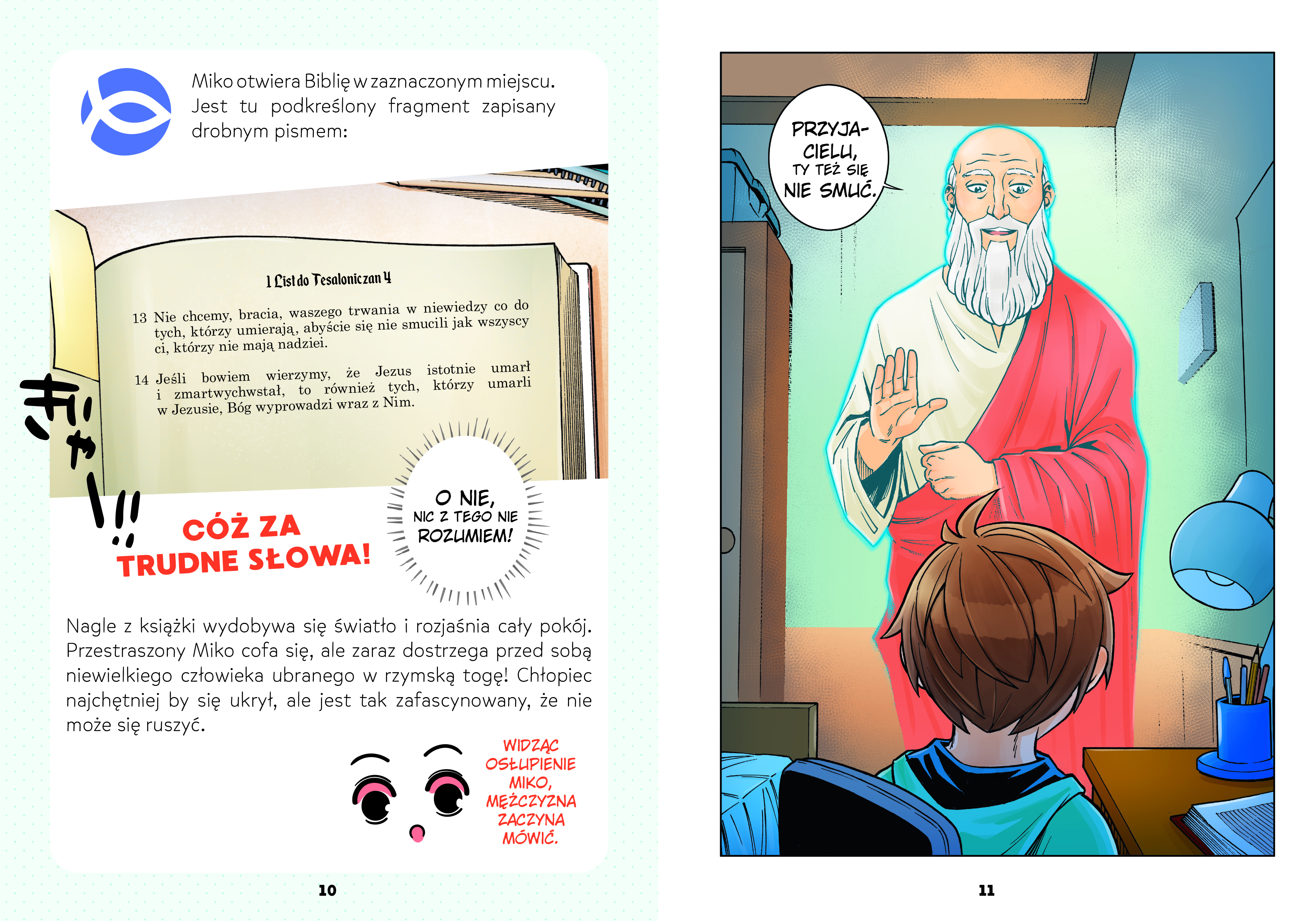 Ta wyjątkowa książka z ilustracjami w stylu mangi spodoba się młodym czytelnikom, którzy chcą lepiej poznać Biblię i odkryć sens życia chrześcijanina.