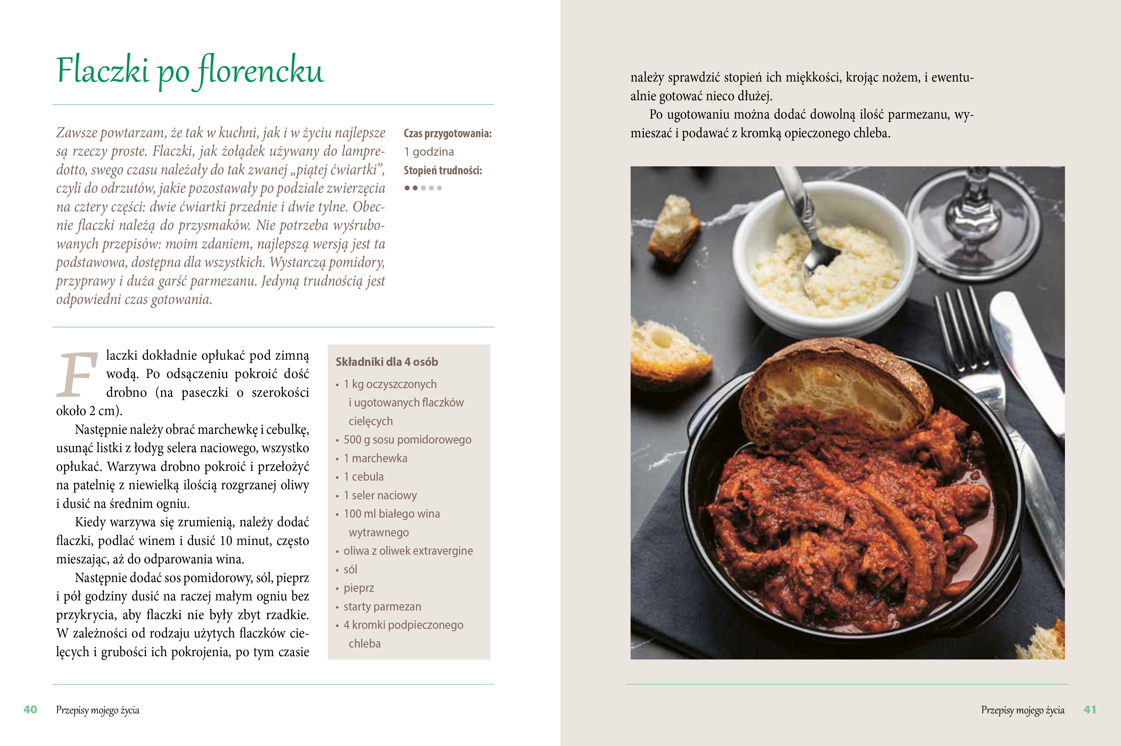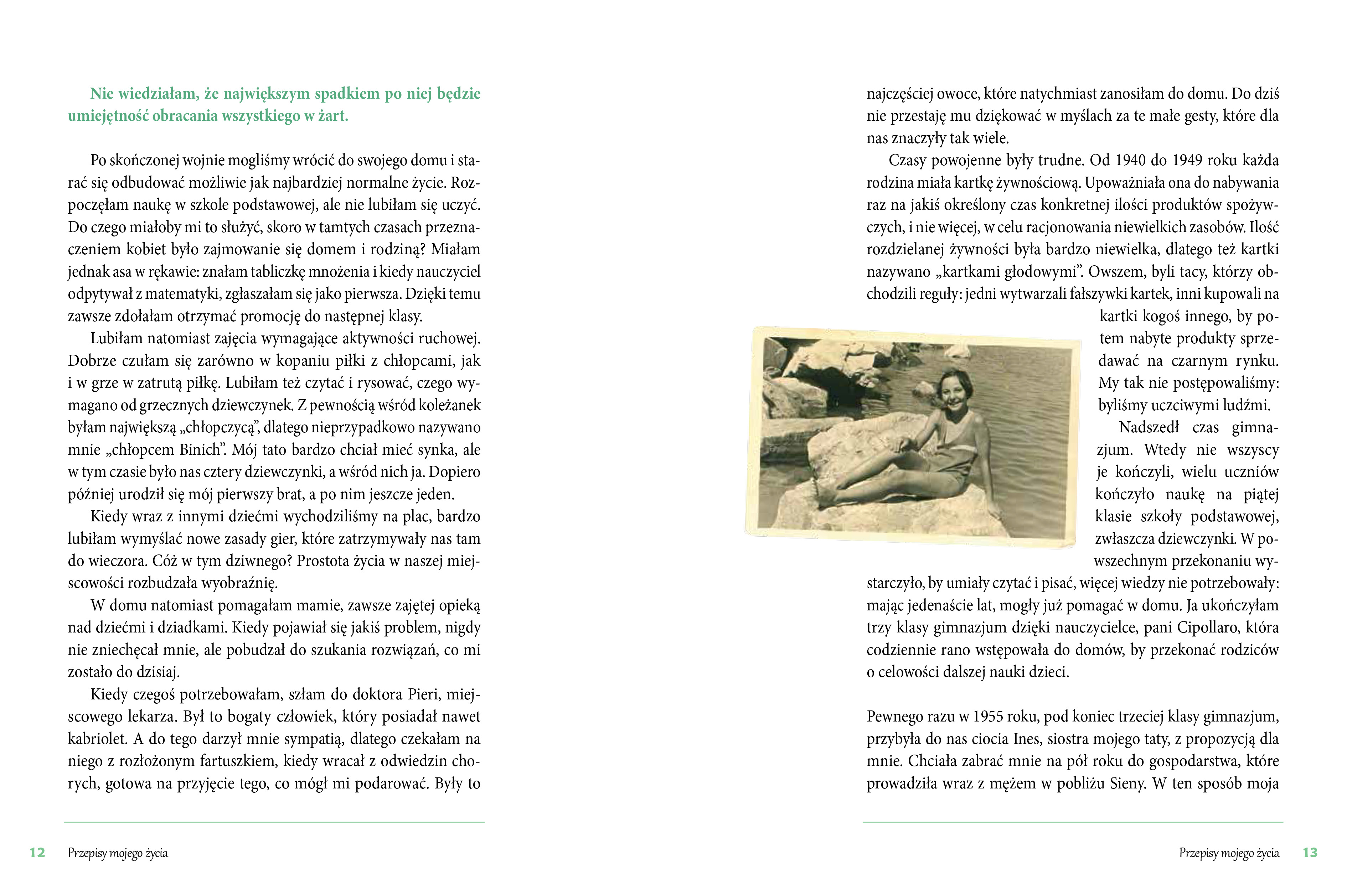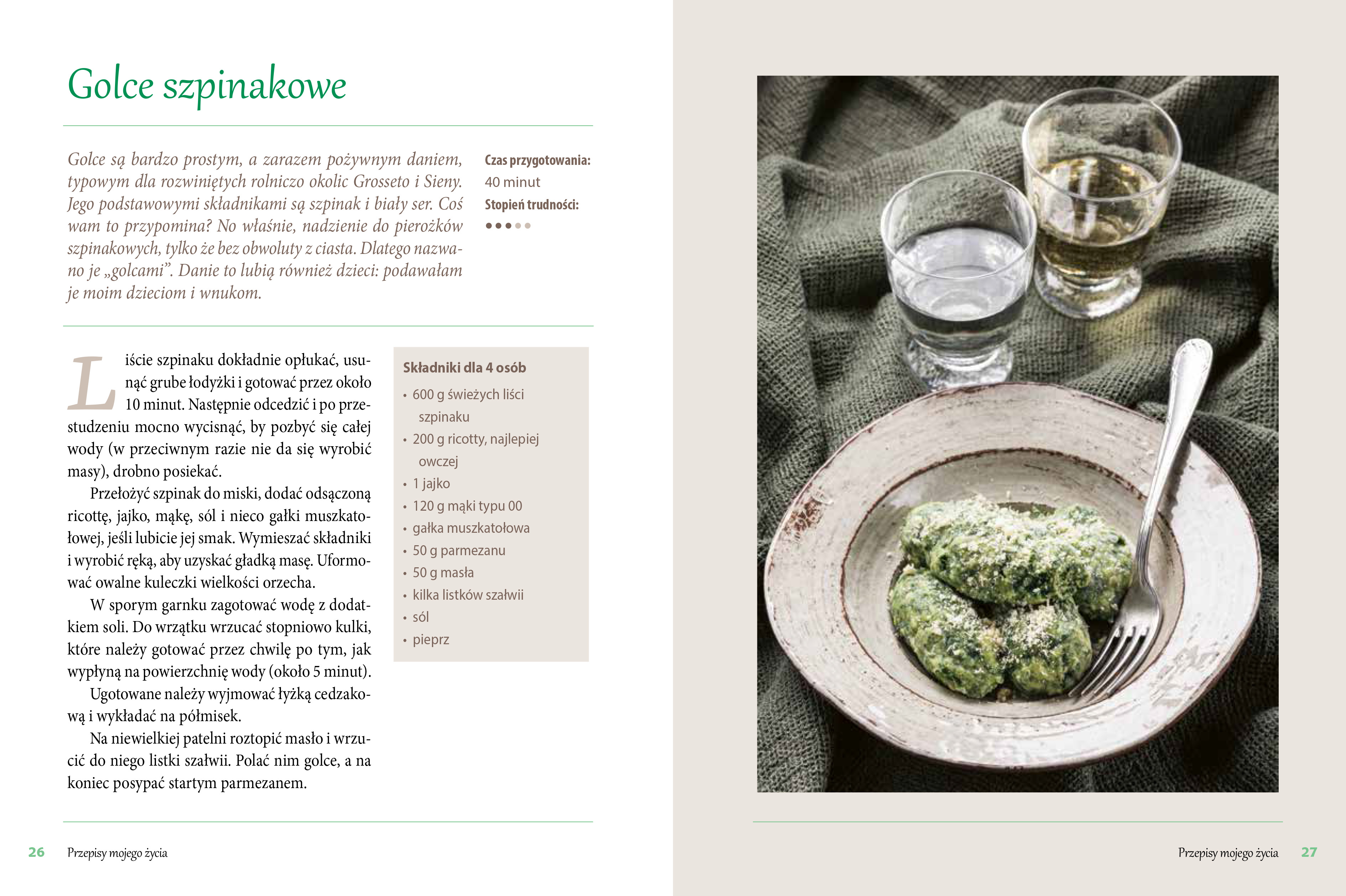 „Urodziłam się w ubogiej rodzinie w czasie wojny, nigdy jednak nie traciłam czasu na narzekanie. Tutaj znajdują się moje dzieje i moje przepisy. O niektóre z nich prosicie od dawna, inne są nowe. Nie lubię dzielić się nimi, ale dla was czynię wyjątek”.