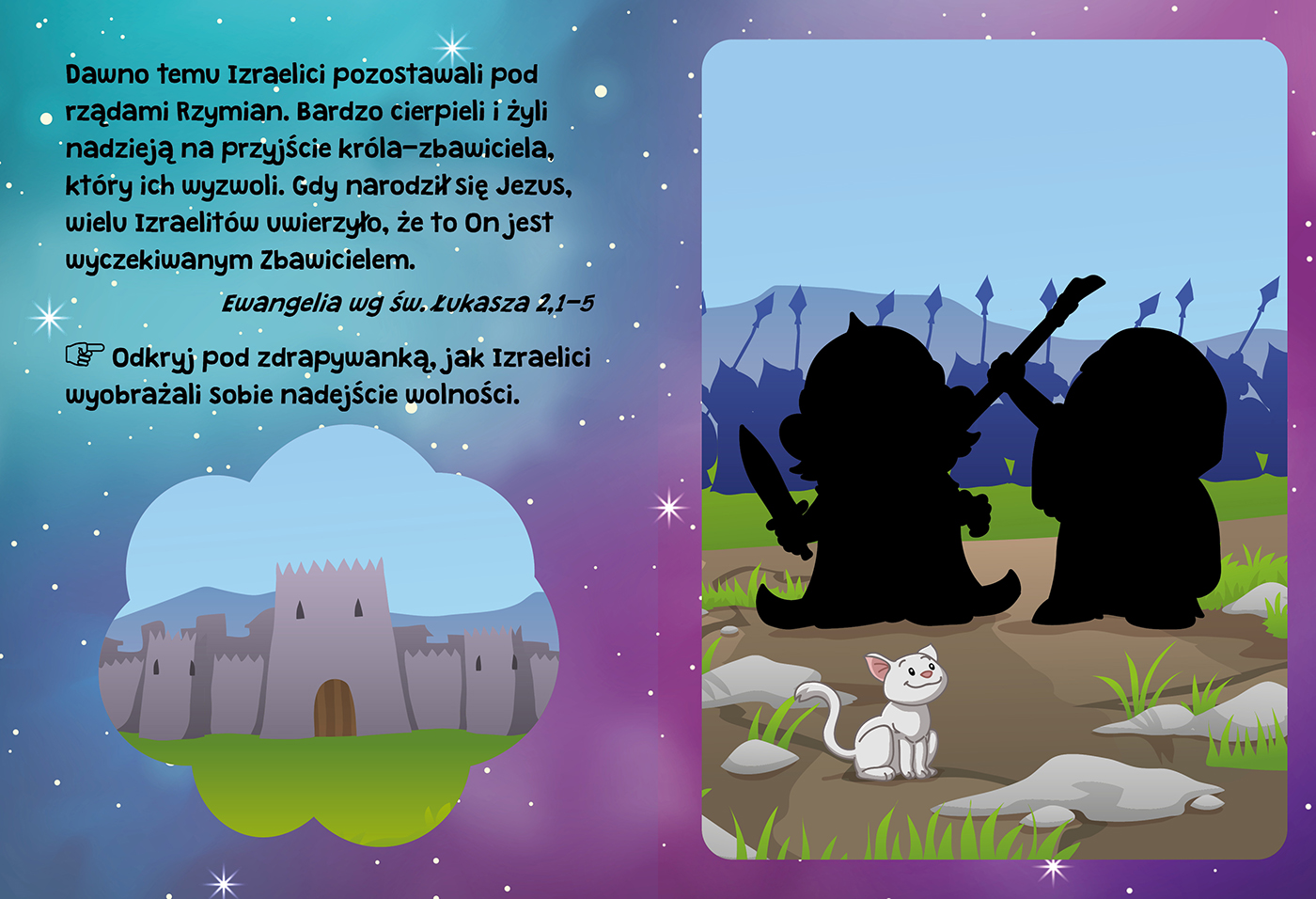 Dowiedz się więcej o Panu Jezusie, Zbawicielu świata! Rozwiązuj kolejno zadania, zdrapując wierzchnią warstwę farby za pomocą patyczka dołączonego do książki. Baw się dobrze!