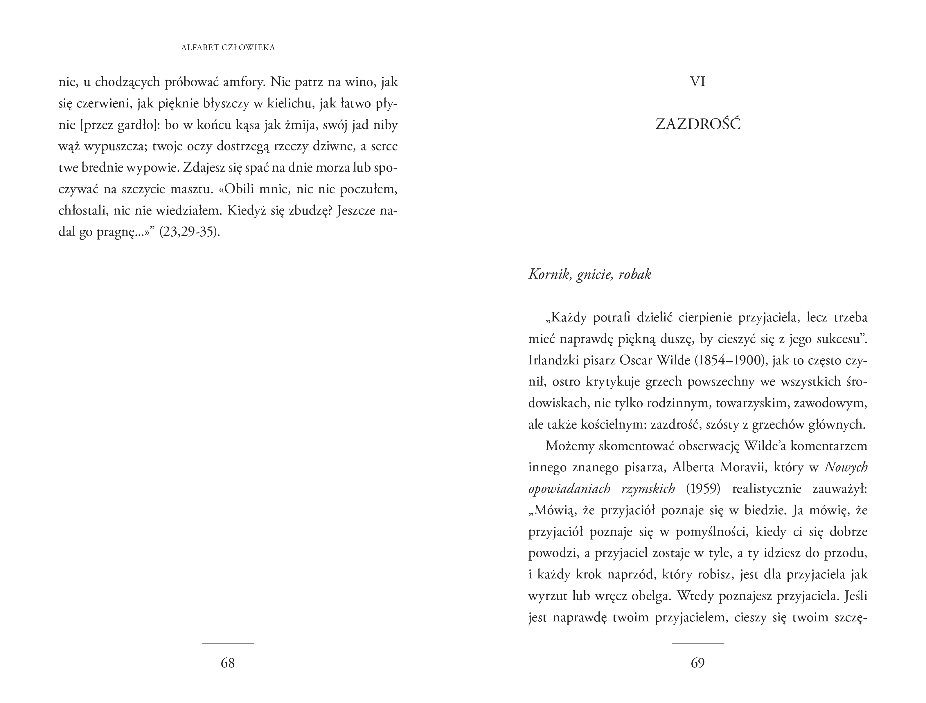 Alfabet człowieka to książka niebanalna. Gianfranco Ravasi zaś to niesamowity erudyta, który prezentuje w niej kompendium wiedzy nt. wad oraz cnót, osadzając je w historii, ale również ukazując je we współczesnych realiach. Obecnie bowiem te pierwsze tracą wszelkie moralne piętno i przybierają maskę swoistej mody. Te drugie natomiast jawią się jako nieatrakcyjne, pedantyczne i nudne.