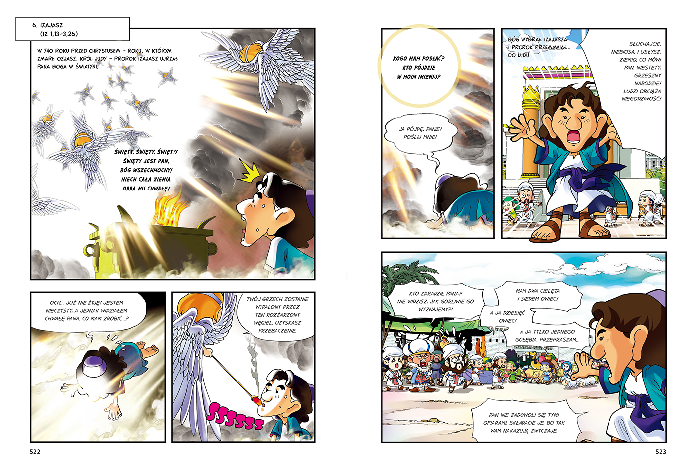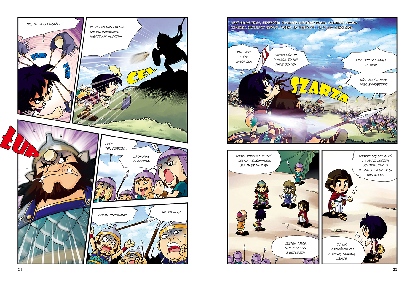 To komiksowe wydanie Biblii powstało, aby pomóc młodym czytelnikom poznawać Pismo Święte w sposób dostosowany do ich percepcji. W czasach gdy Internet, gry wideo, YouTube i media społecznościowe walczą o naszą uwagę, nowatorskie podejście do Biblii wydaje nam się ważnym krokiem w kierunku odkrywania i coraz lepszego poznawania historii zbawienia i miłości, w którą Bóg zaangażował ludzi. Swobodne dialogi komiksu i jego oryginalna szata graficzna z pewnością zachęcą starsze dzieci do pasjonującej i pełnej refleksji lektury.