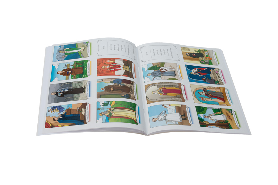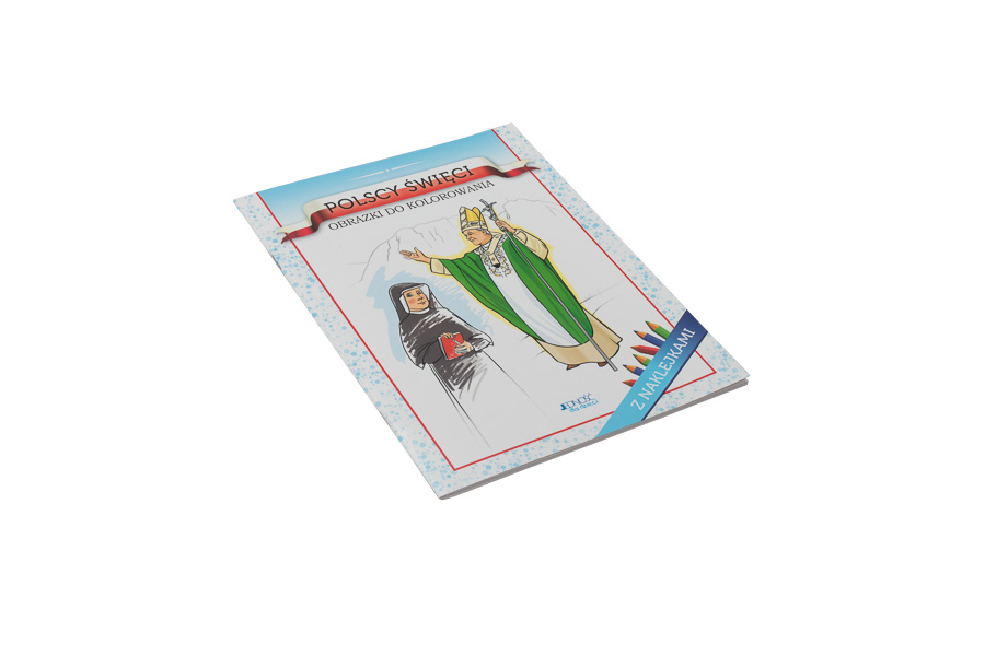 Kolorowanka przedstawia sylwetki polskich świętych i błogosławionych. Zapoznaje dzieci z wielkimi bohaterami wiary i zachęca do powierzania im swoich spraw. Książka zawiera 14 obrazków do pokolorowania, a także kolorowe naklejki z wizerunkami świętych i błogosławionych oraz krótkie notki biograficzne. Posłuży zarówno jako pomoc katechetyczna, jak i upominek wzbogacający wiedzę małego chrześcijanina.