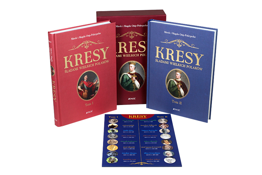 Dwa tomy albumów Kresy w eleganckim etui + usztywniona przegródka stanowiąca spis postaci historycznych.