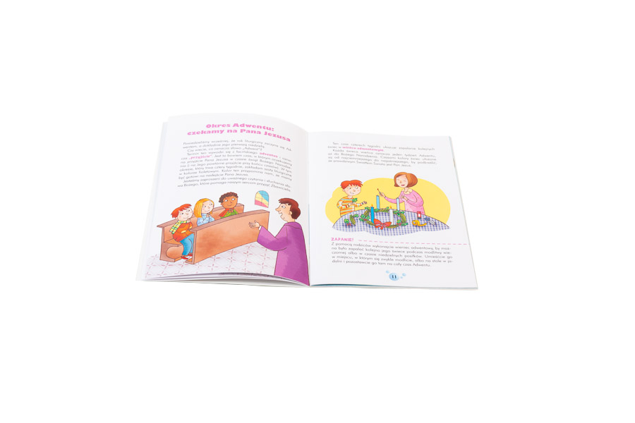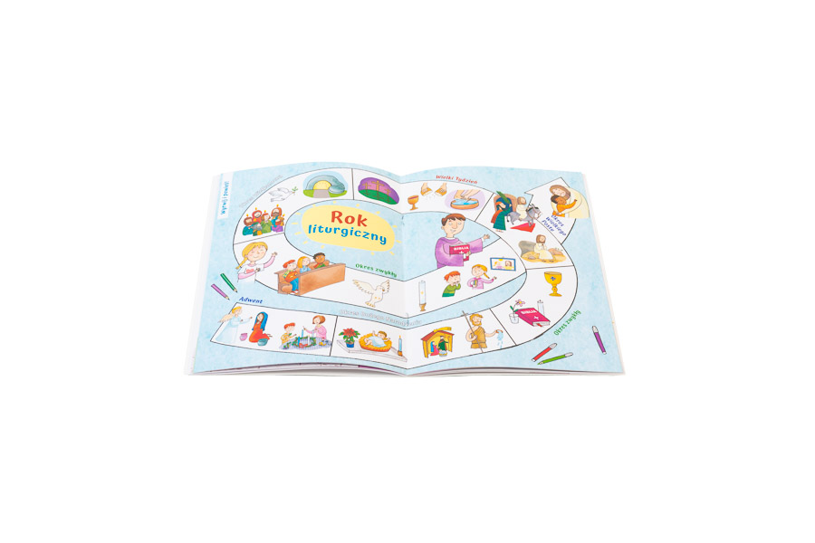 Ta urocza książeczka przeprowadza małych chrześcijan przez różne okresy roku liturgicznego. Zaznajamia dzieci z podstawowymi terminami, kolorami, literami i symbolami. Na jej 32 stronach znajdziemy schemat roku liturgicznego i propozycje wielu inspirujących aktywności, które pomogą dzieciom w twórczy sposób przeżywać uroczystości, święta i dni okresu zwykłego.