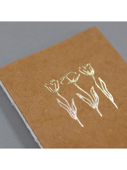 Okładka notesu z pięknym, złotym tłoczeniem w maki podkreśla minimalistyczną, gustowną stylizację.