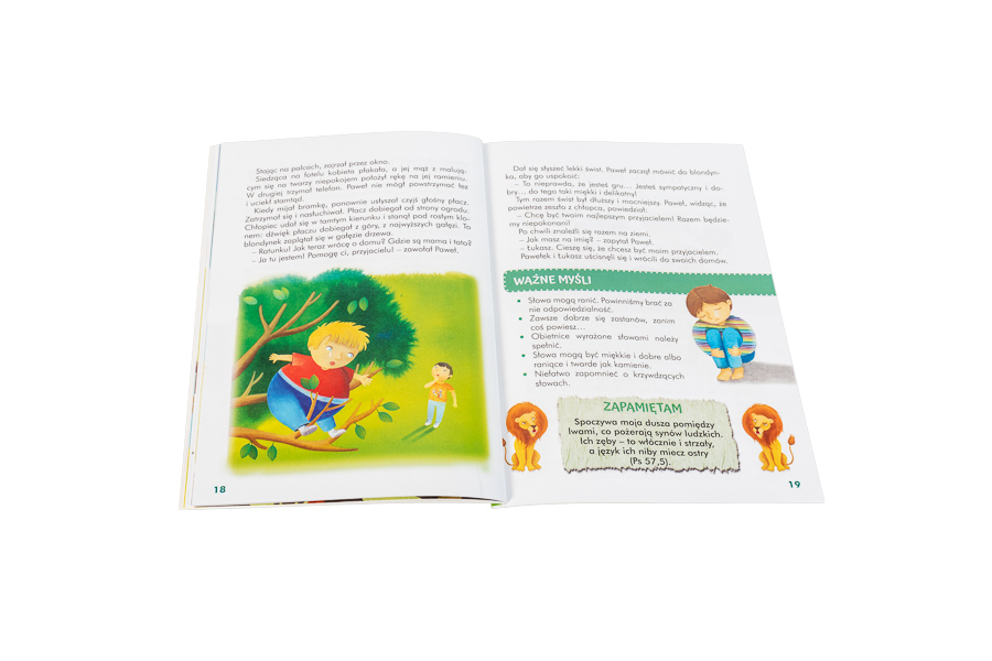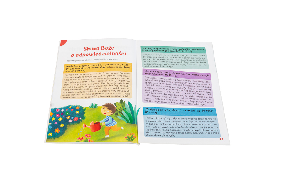 Na 32 kolorowych stronach tej publikacji dzieci, rodzice i katecheci znajdą rozważania, tematy do dyskusji i przemyśleń oraz mnóstwo inspirujących zdań, które sprawią, że szukanie odpowiedzialności stanie się dla wszystkich niezapomnianą przygodą.