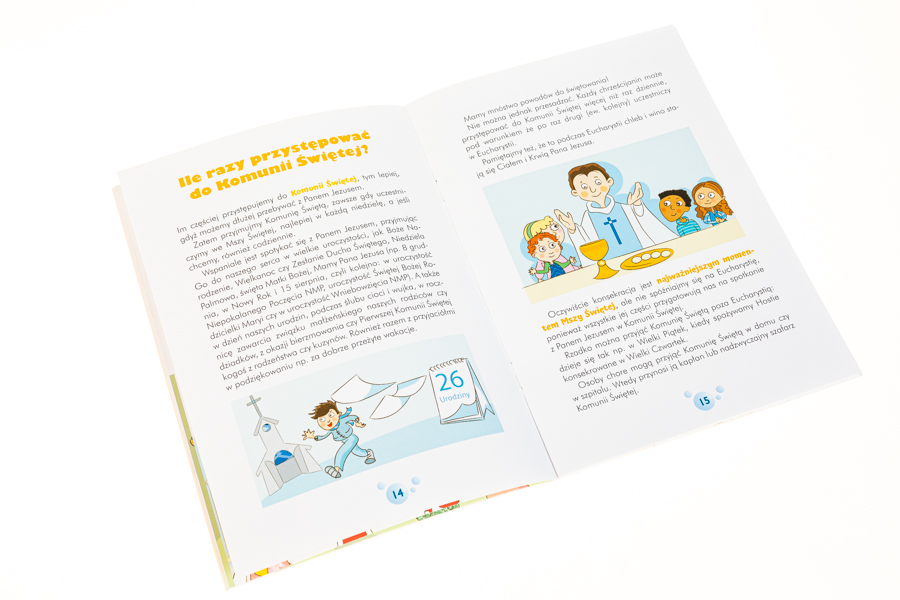 Na jej 32 stronach przeczytamy wiele ciekawych rozważań dotyczących Eucharystii i cudów eucharystycznych, ponadto dowiemy się, w jaki sposób przygotować się do godnego przyjęcia Ciała Pana Jezusa, i uświadomimy sobie, że Komunia Święta jest najpiękniejszym spotkaniem z Jezusem i naszymi braćmi.