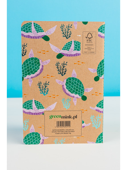 Podręczny, szyty nićmi notes ekologiczny Morski II z tekturową okładką pochodzącą w całości z odzysku!
