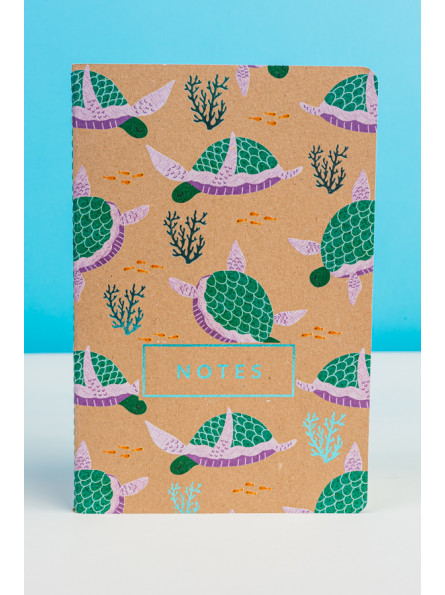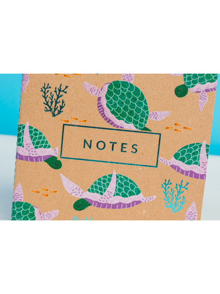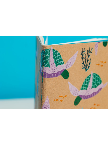 Okładki notesu z motywami morskimi oraz subtelnie tłoczone elementy grafiki i napisy, tworzą piękne zestawienie z naturalną tekturą. Kolor nici, pierwszej i ostatniej strony notesu uzupełniają stylowy wygląd notesu.