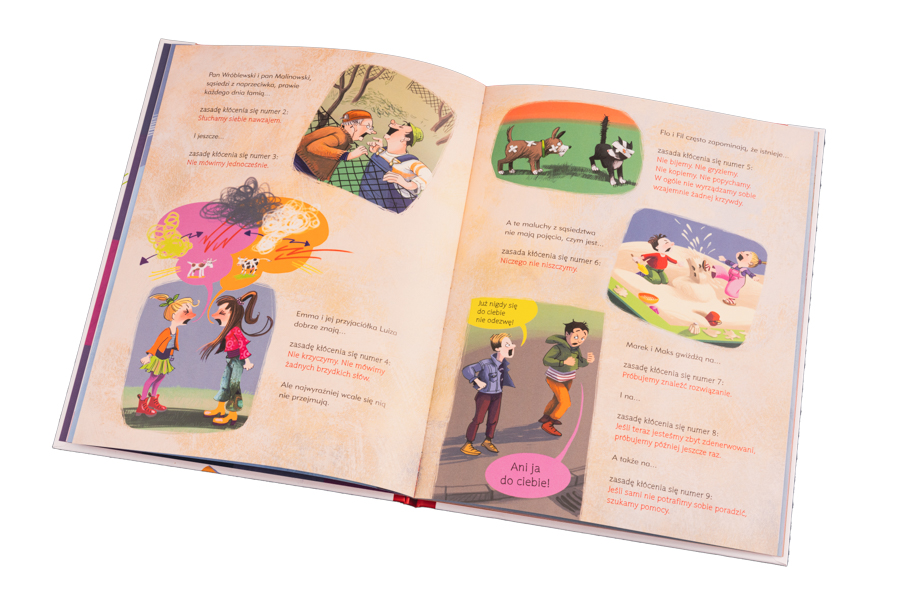 Sprzeczki zdarzają się nawet najlepszym przyjaciołom. To nic strasznego! Mali bohaterowie tego opowiadania znają kilka pomocnych zasad, jak wtedy ze sobą rozmawiać, by nie doszło do awantury. Ale czasami nawet najlepsze zasady nie pomagają. Kłócimy się i już! Jak się zachować, gdy tak się zdarzy? Czy w takiej sytuacji uda się uratować przyjaźń? Książka ta pokazuje, że nieporozumienia są czymś całkowicie normalnym i choćby po najgorszej kłótni można się pogodzić, a przyjaźń nawet czasem na tym zyskuje. Ważny jest jednak wzajemny szacunek i trzymanie się kilku prostych zasad. Pełne fantazji opowiadanie ze szczyptą humoru spodoba się małym i dużym czytelnikom, a jednocześnie będzie doskonałym punktem wyjścia do otwartych rozmów o kłóceniu się i przywracaniu zgody.