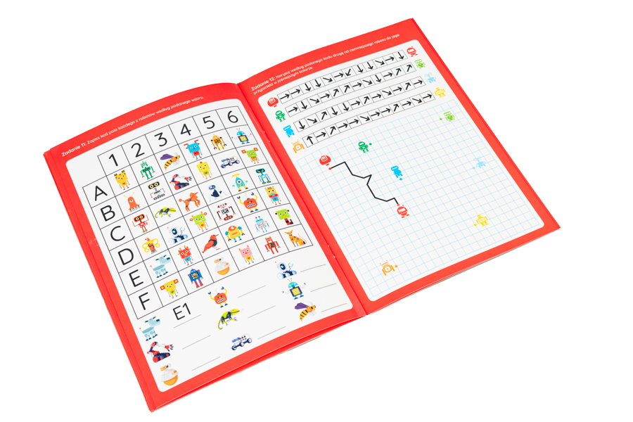 Książka 1...2...3... kodujemy! powstała z myślą o dzieciach, które uwielbiają rozwiązywać łamigłówki. To świetna metoda na wprowadzenie przedszkolaka w świat kodowania i programowania. Odpowiednio przygotowane strony oraz dołączony do książki pisak umożliwiają dziecku ćwiczenie wzroku, koncentracji i logicznego myślenia. Maluch może zapisywać rozwiązania pisakiem suchościeralnym, po czym w każdej chwili zetrzeć jego ślad, aby coś poprawić lub jeszcze raz rozwiązać łamigłówkę. Ciekawe zadania oraz wesołe rysunki z pewnością zachęcą dziecko do powtórzenia ćwiczeń – i to wiele razy!