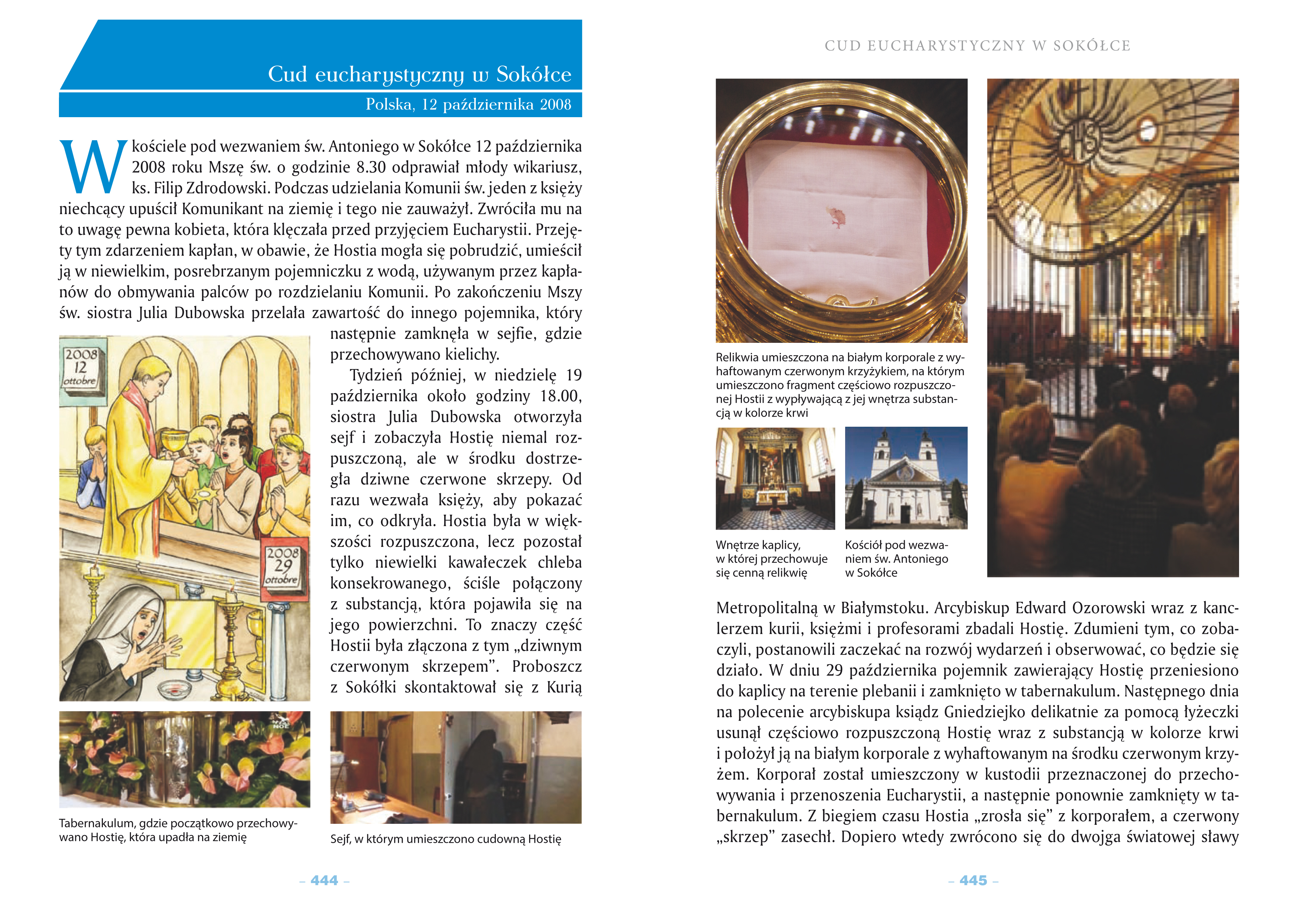 Książka jest opowieścią o nadzwyczajnych ingerencjach Boga potwierdzających naocznie realną obecność Zbawiciela świata pod postaciami eucharystycznymi. Zawiera opisy licznych cudów eucharystycznych oraz miejsc, w których się one wydarzyły, i to zarówno w przeszłości, jak i w czasach współczesnych. Najnowsze wydanie zostało wzbogacone o potwierdzone przez Kościół cuda eucharystyczne w sanktuarium Betania w wenezuelskim miasteczku Cua, w parafii Santa Maria w Buenos Aires, a także w parafii św. Antoniego w Sokółce. Cuda te ożywiają naszą wiarę, ale są również wyzwaniem dla nauki, która staje w obliczu tajemnicy. Zdumiewający jest fakt, że w ekspertyzach naukowców przeprowadzających badania próbek pochodzących z cudownie przemienionych Hostii powtarza się konkluzja: tkanka mięśnia sercowego w chwili agonii. Ta porywająca lektura nie pozwala pozostać obojętnym.