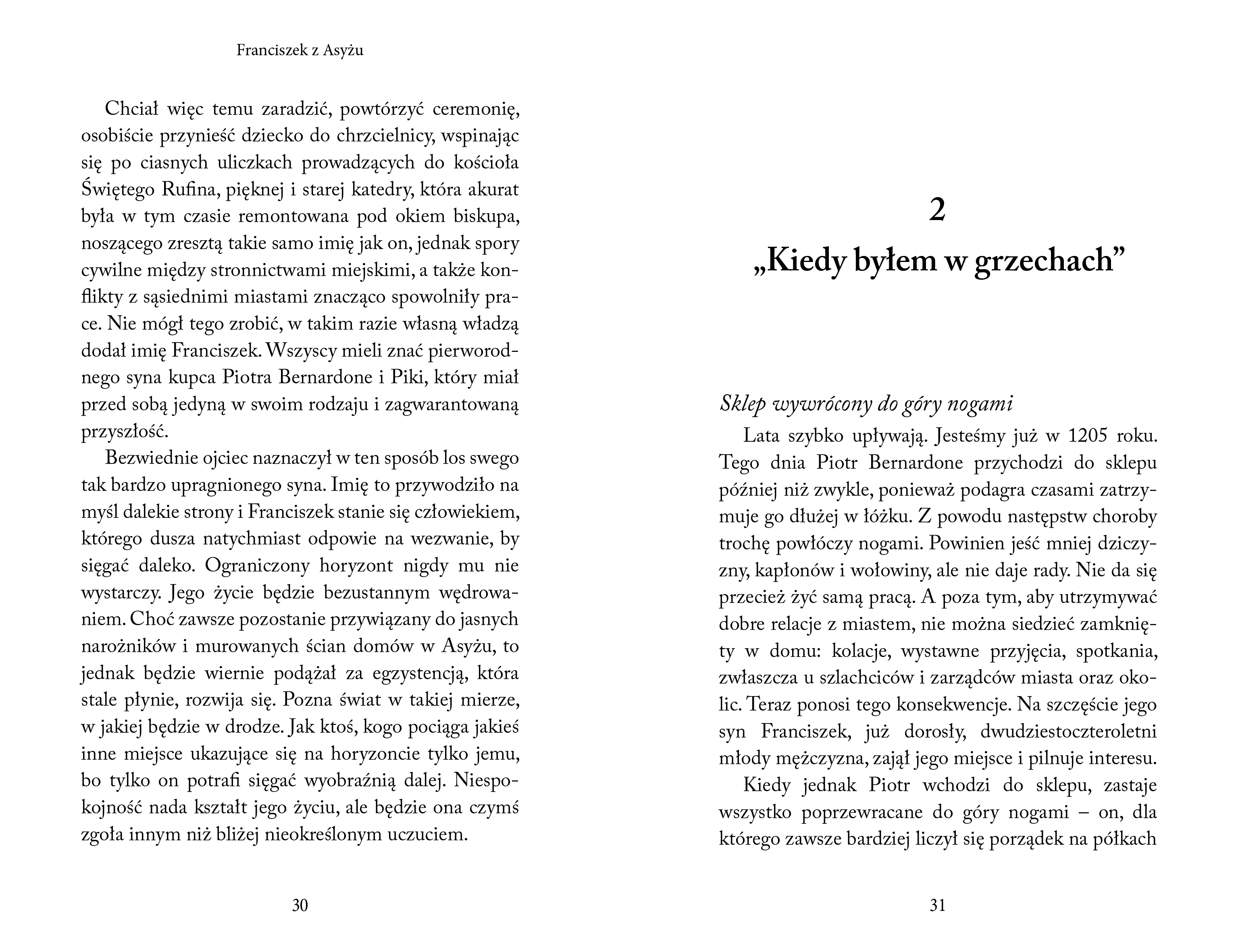 Nikomu nie przyszłoby na myśl, że życie Świętego Franciszka z Asyżu będzie takie, jakie je dziś wszyscy znamy. Jako pierworodny syn w mieszczańskiej rodzinie z ambicjami powinien był pójść w ślady ojca, zająć się handlem i prowadzić życie pełne wygód. Historia Franciszka potoczyła się jednak inaczej. Pozwalając działać w sobie tej niespokojności, która zaprowadziła go daleko, bardzo daleko, w świetle miłosierdzia odmienił na zawsze los, nie tylko swój, ale także wielu braci i sióstr, ubogich i odrzuconych. Niniejsza książka jest zwięzłym opowiadaniem, które bierze pod lupę wszystkie podstawowe etapy życia Franciszka. Widzimy go jako młodzieńca, który ogałaca się z posiadanych rzeczy i wybiera drogę ubóstwa; spotykamy pierwszych towarzyszy, którzy przyłączają się do niego i jego przepowiadania; słyszymy o papieskim zatwierdzeniu jego wspólnoty, a także o otwarciu się na kobiety i ważnym spotkaniu z Klarą, o stygmatach, które nie powstrzymują go przed niesieniem światu orędzia Ewangelii aż do śmierci w 1226 roku.