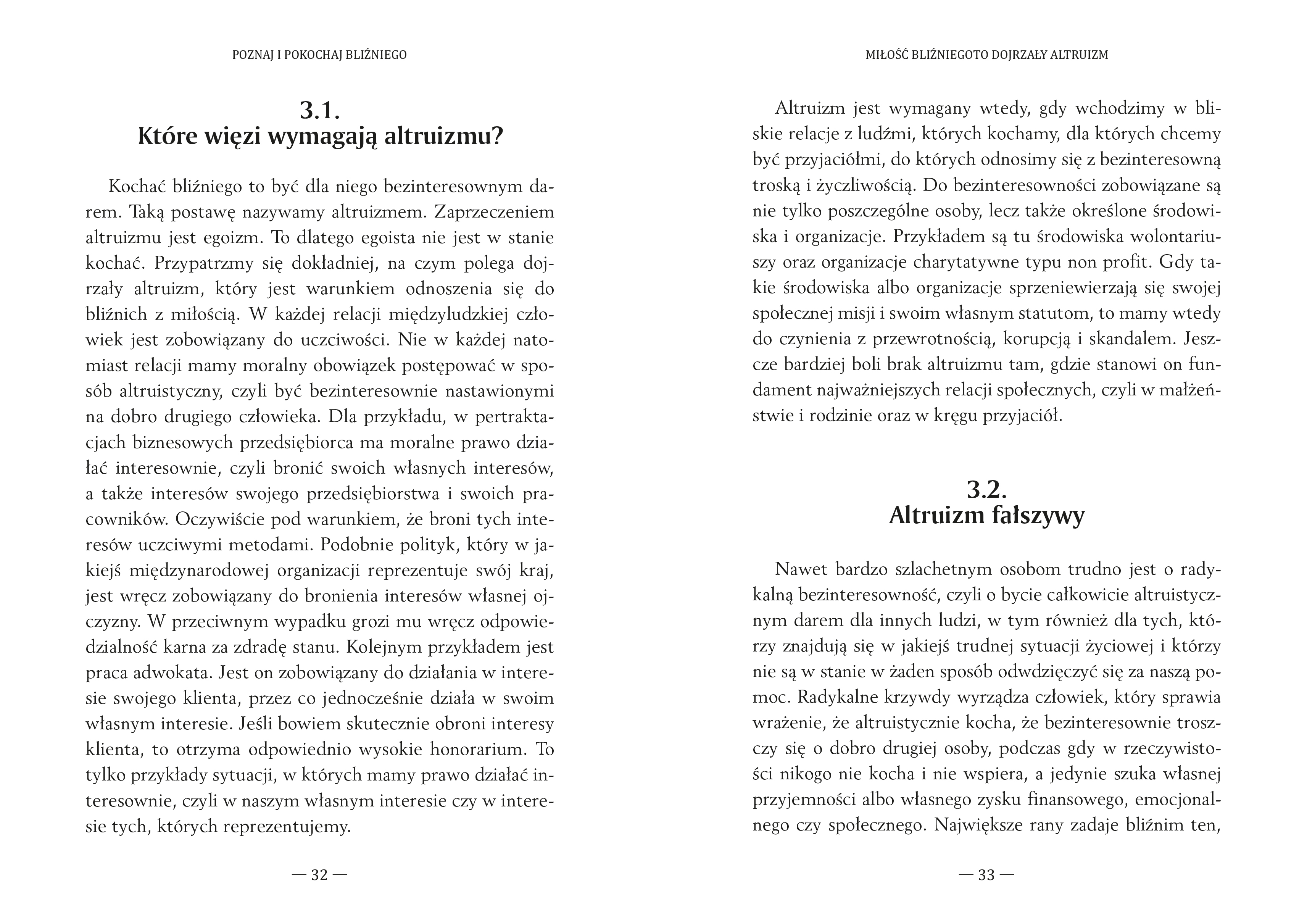 Oddajemy do rąk Czytelników trzeci tom z serii Droga Pięknej Miłości. Ta książka to praktyczny podręcznik miłości w odniesieniu do ludzi, których spotykamy. Jego autorzy są kapłanami, którzy od niemal pięćdziesięciu lat spotykają się z dziećmi, młodzieżą i dorosłymi, z kobietami i mężczyznami, z ludźmi zdrowymi i chorymi, z wolnymi i uzależnionymi, ze szczęśliwymi i nieszczęśliwymi. Wskazania zawarte w tej książce opierają się na uważnej analizie miłości, jaką okazuje nam i jakiej uczy nas Chrystus. Drugim źródłem treści zawartych w niniejszej publikacji są praktyczne wnioski, do jakich autorzy tej książki dochodzą w oparciu o tysiące rozmów odbytych zarówno z tymi ludźmi, którzy kochają i są kochani, jak też z tymi, którzy nie są kochani czy którzy nie potrafią jeszcze kochać.