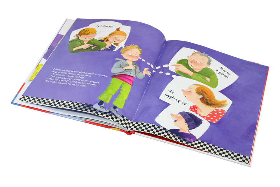 Poznanie własnych uczuć i radzenie sobie z nimi to wielka sztuka, której uczymy się przez całe życie, ale zacząć powinniśmy już w dzieciństwie. Nie ma dobrych i złych emocji, ale mały człowiek musi wiedzieć, że nie w każdej sytuacji może skakać z radości i śmiać się do rozpuku, podobnie jak nie może pozwolić sobie na niegrzeczne zachowanie czy brzydkie słowa, tylko dlatego że akurat ma zły nastrój. Ta książka pomaga dzieciom nazwać ich uczucia i kontrolować je w sposób adekwatny do miejsca i czasu. Na jej kartach opowiadają o swoich emocjach sympatyczne przedszkolaki, zupełnie takie jak nasze pociechy…