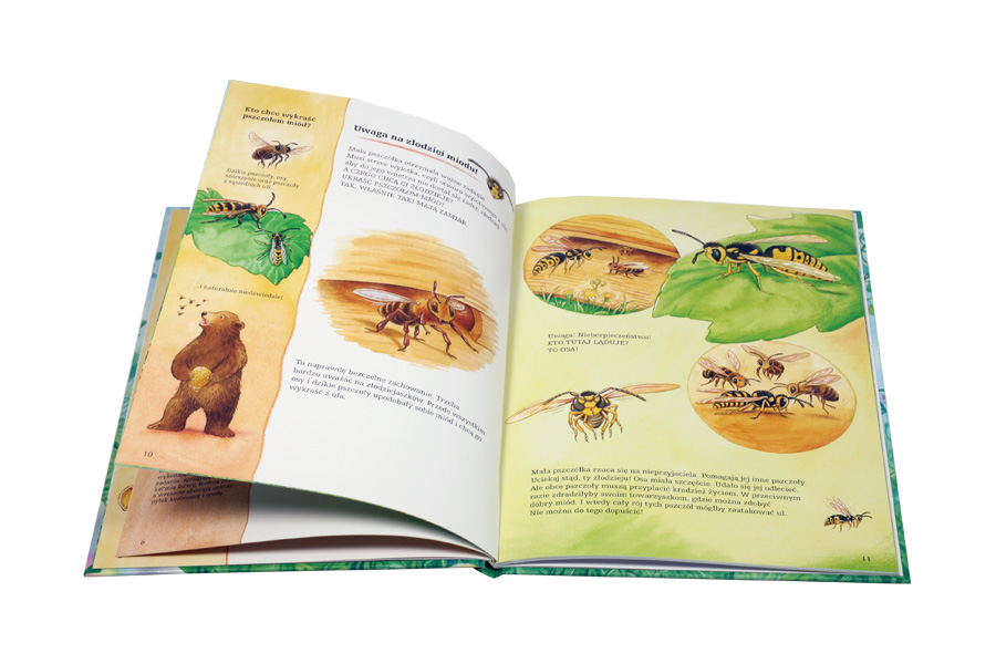 Ta wyjątkowa książka zaprasza na spotkanie z przyrodą, która nas otacza. Bliskie rzeczywistości, piękne ilustracje przedstawiające pszczoły miodne w ich niezwykłym świecie oraz przyjazny dzieciom tekst zawierający mnóstwo wiadomości to prawdziwa gratka dla małych badaczy i miłośników przyrody. Na dołączonej do książki płycie CD znajduje się interesująco opowiedziana historia, której towarzyszą odgłosy przyrody. Dzięki temu dzieci poznają otaczający je świat i nauczą się wsłuchiwać w jego przebogate dźwięki.