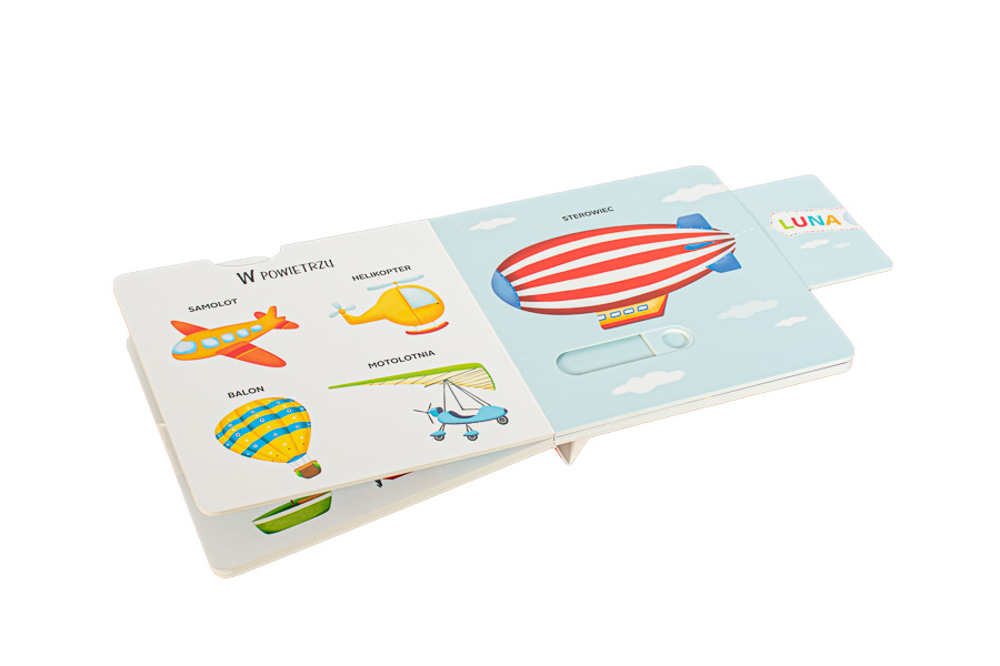 Uwagę dzieci przyciągną nie tylko ilustracje, ale także liczne ruchome elementy, które zapewnią wspaniałą, pełną niespodzianek zabawę. Maluch może manipulować, przekręcać, otwierać okienka i przesuwać elementy. Zabawa z Pojazdami doskonale wpłynie na rozwój motoryki i sprawności manualnej najmłodszych.