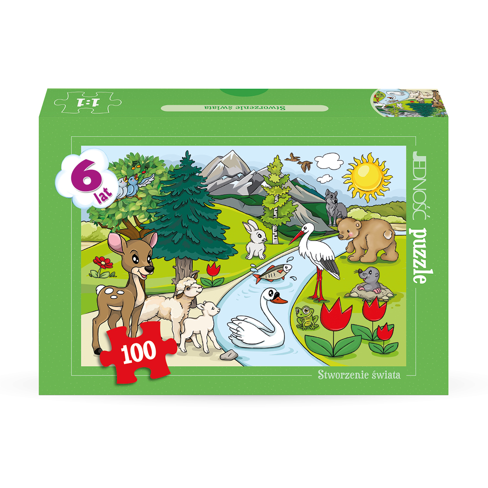 Puzzle składają się ze 100 elementów i spakowane są w praktyczne pudełko. Po ułożeniu powstanie duży, kolorowy obrazek o wymiarach 41 x 27,5 cm.