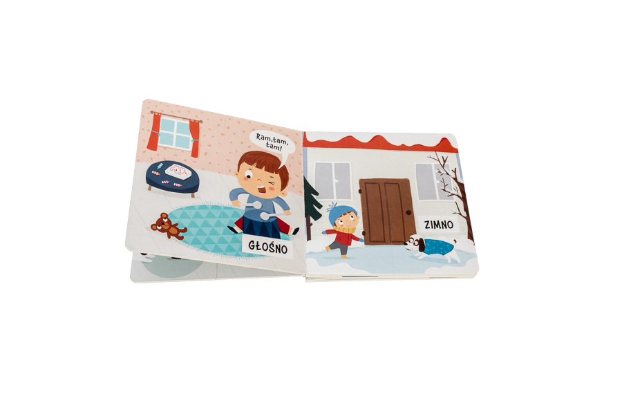 Każda strona książki Dzień czy noc? jest podzielona na pół i po rozsunięciu odkrywa przed małym czytelnikiem ukrytą ilustrację. Tu jest sucho, a tam mokro. Tynio jest głośno, a Mania cicho. Tu Mania śpi z rodzicami, a tam sama. Rozsuwając strony książeczki i obserwując jej bohaterów, najmłodsi będą poznawać nowe słowa i rozwijać mowę.