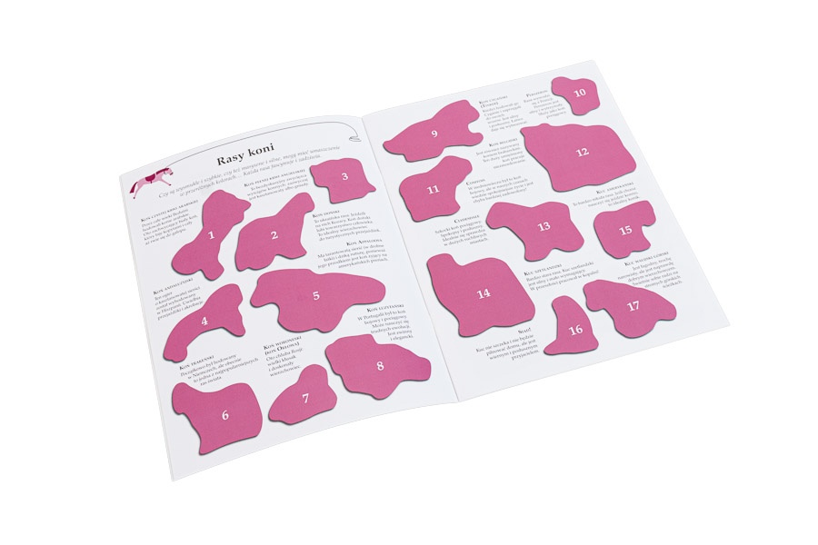 Szlachetny wygląd, rozwiana grzywa i długi ogon – to właśnie konie. Ta książeczka zapewnia świetną zabawę kolorowymi naklejkami, które dzieci wprost uwielbiają. Mali miłośnicy koni będą poznawać ich rasy, charakter i zwyczaje, a także ćwiczyć spostrzegawczość i pamięć. Po wklejeniu wszystkich naklejek w odpowiednich miejscach powstanie mała encyklopedia koni!