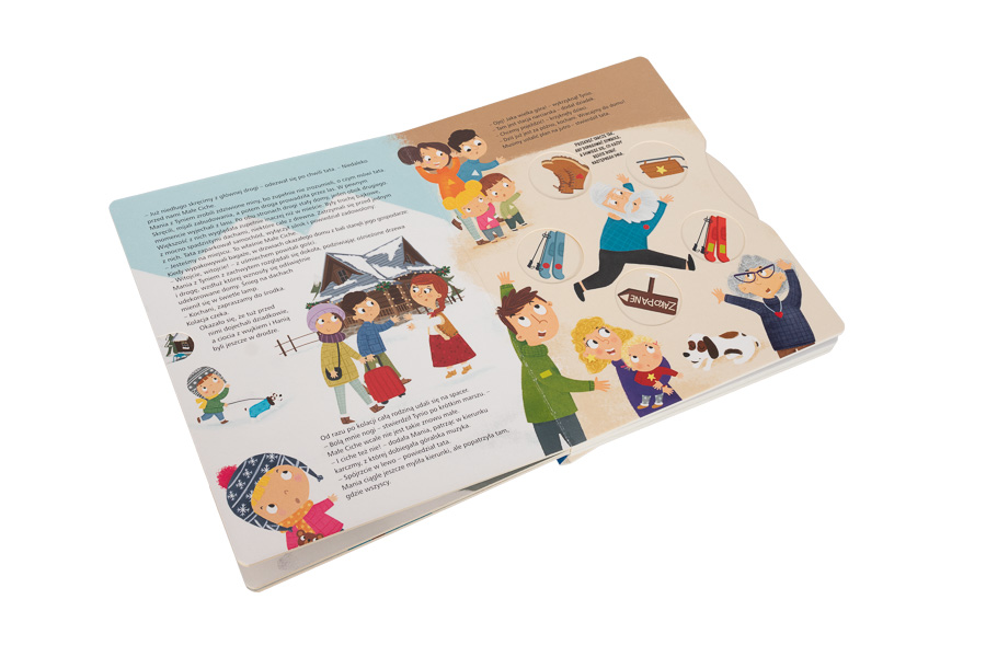 Umieszczone na każdej stronie okienka oraz ruchome elementy budzą ciekawość młodego czytelnika, rozwijają wyobraźnię i dostarczają mnóstwo zabawy. Dzieci zajrzą do walizek, zobaczą panoramę Tatr, sprawdzą, jakie upominki kupili bohaterowie.