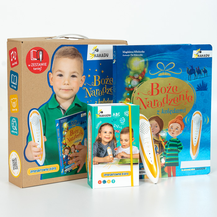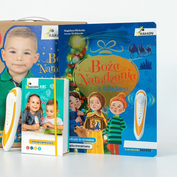 Zestaw z piórem Kakadu, książką interaktywną „Boże Narodzenie z kolędami” i wyszukiwanką
