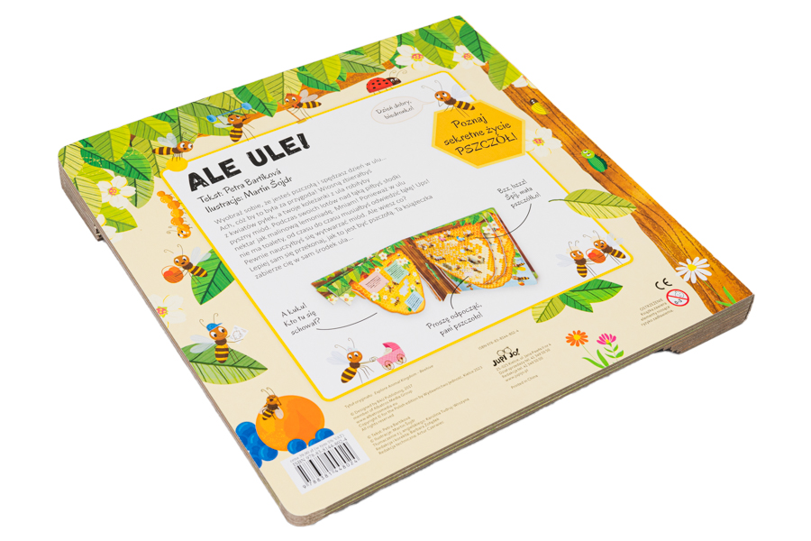 Urocza kartonowa książeczka z pomysłowymi wycięciami zaprasza dzieci do fascynującego świata pszczół. Dzięki jej barwnym i pełnym humoru stronom dzieci poznają wiele słodkich jak miód ciekawostek i poczują się, jakby zaglądały do wnętrza ula. Bzz, bzz! Ale ule! Ale zabawa! Bajecznie kolorowe strony książeczki zaciekawią dzieci otaczającym je światem i pięknem przyrody i zapewnią im rozwijającą i bezpieczną rozrywkę.