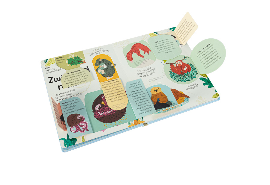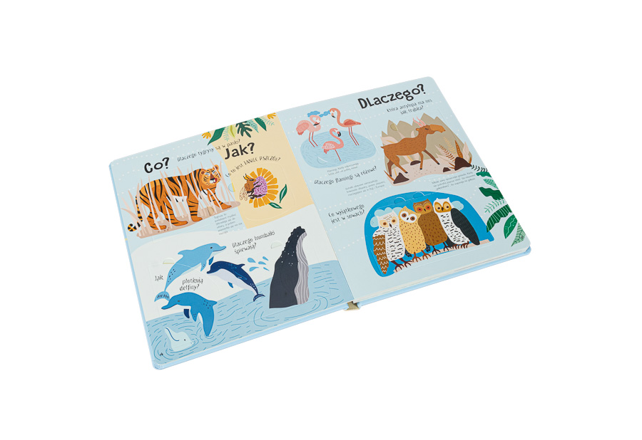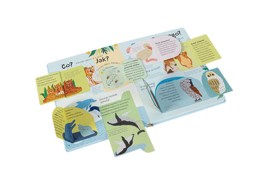 Dzieci będą oglądać, podnosić klapki i śmiać się z ilustracji oraz ciekawostek! Poznają zwierzę, które nigdy nie umiera, będą podziwiać roztańczone głuptaki niebieskonogie i dowiedzą się, które zwierzęta są zagrożone i jak można im pomóc.