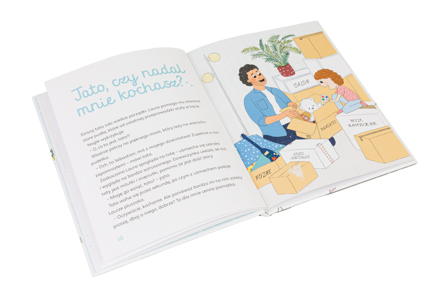 Na tę uroczo ilustrowaną książkę składają się dwa zbiorki opowiadań: z jednej strony cztery historie do czytania z tatą, z drugiej – cztery historie do czytania z mamą. Każda z nich opowiada o miłości rodzica do dziecka i przepełniona jest czułością, a przy tym odzwierciedla dziecięce troski i codzienne życie w rodzinie.