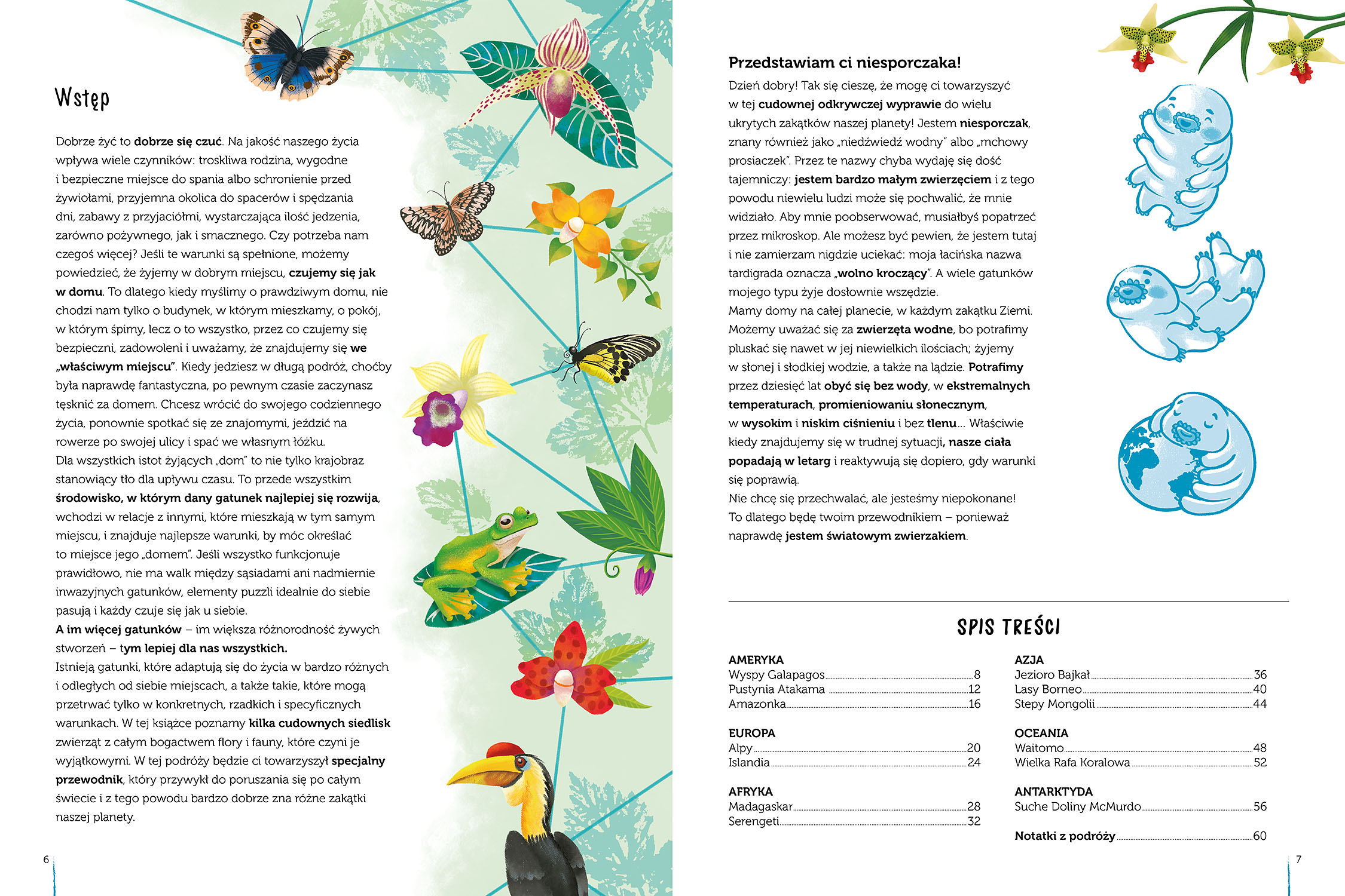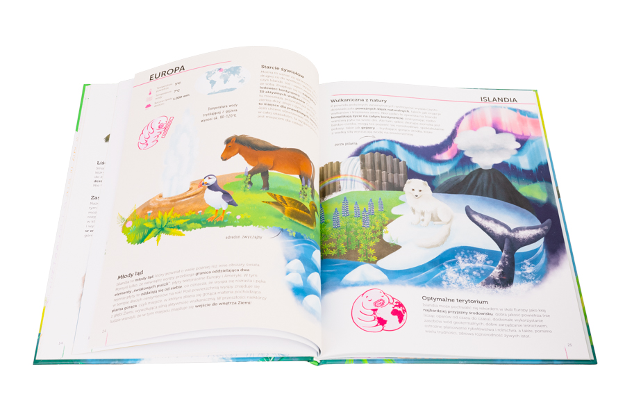 Ta kolorowa, pełna wiedzy, przyrodniczych ciekawostek i pięknych ilustracji książka zaprasza wszystkie dzieci do odkrywania niezwykłych i najpiękniejszych miejsc na Ziemi, w których żyją wyjątkowe rośliny i zwierzęta. Poznawanie tych wspaniałych obszarów pomoże nam zrozumieć, że cała planeta jest naszym domem, który należy szanować, chronić i kochać.