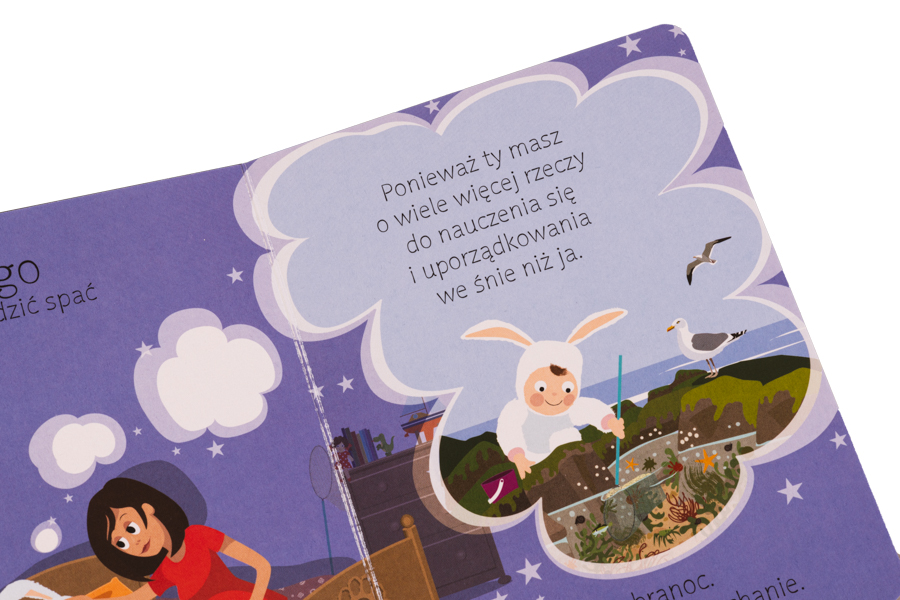 Prosty, bliski dzieciom tekst i pełne humoru ilustracje wyjaśniają, dlaczego nasze ciało i umysł potrzebują odpoczynku. Książka informuje najmłodszych, co się dzieje, kiedy śpimy za mało, a także skąd się biorą i ile trwają sny.