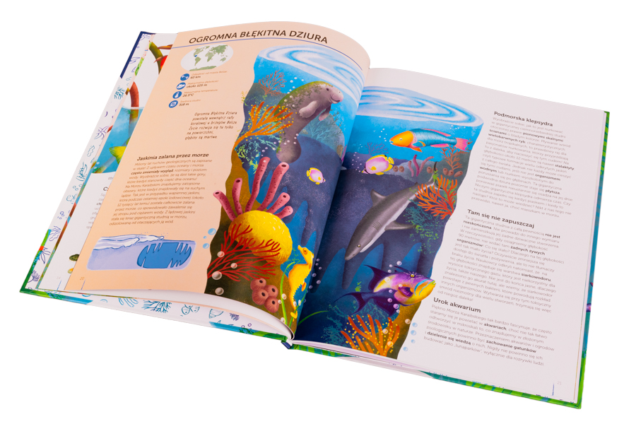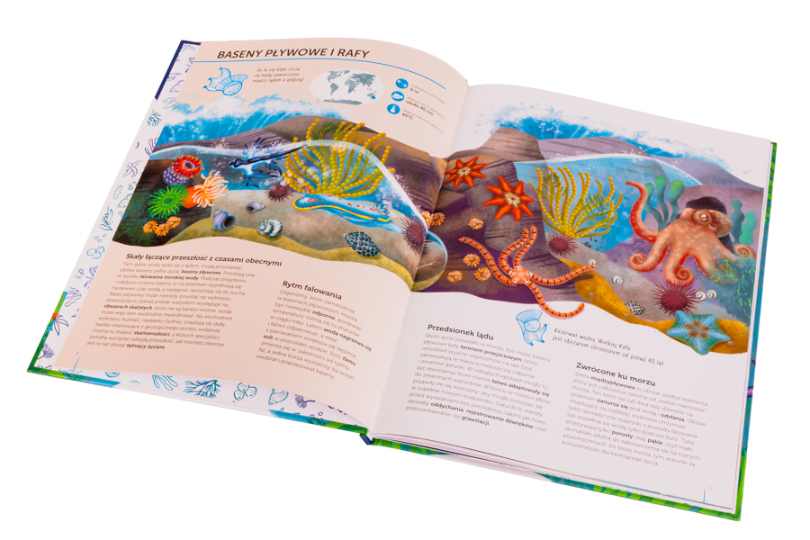 Wystarczy otworzyć ten wyjątkowy atlas, by odkrywać wraz z nami Wielką Rafę Koralową, lasy namorzynowe, Zatokę Hudsona, Rów Mariański i inne tajemnice mórz i oceanów.