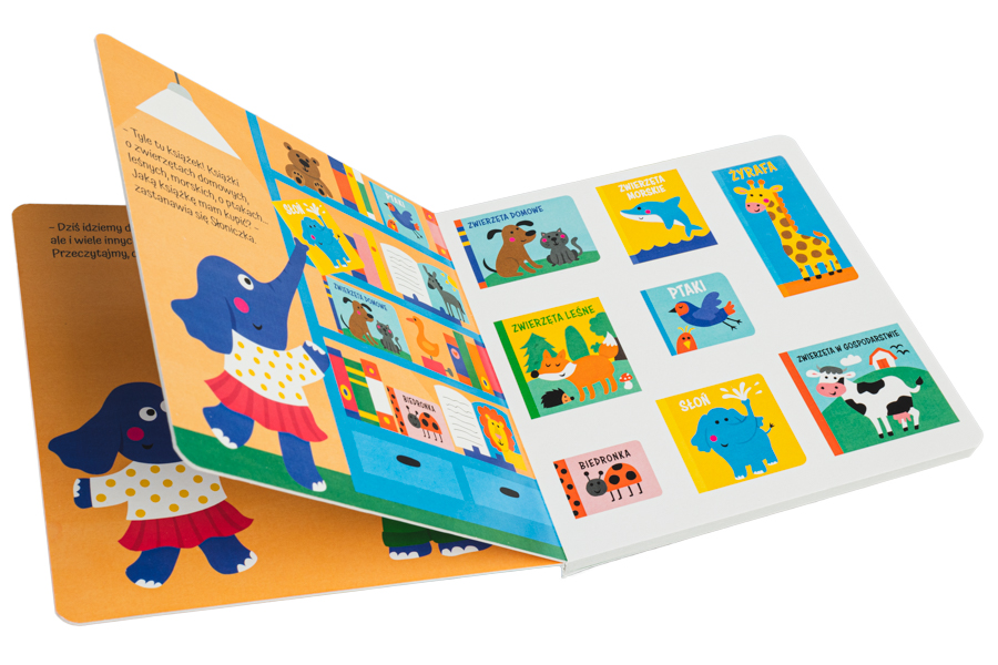 Tata narysował Słoniczce listę zakupów i razem wybierają się do księgarni. Mały czytelnik będzie towarzyszył im podczas zakupów, pozna różne rodzaje książek i artykułów papierniczych. Książka z puzzlami czy książka dźwiękowa? Książka o statkach czy o dinozaurach? Kredki czy ołówek? Sprawdźmy, czy Słoniczka kupiła wszystko z listy zakupów!