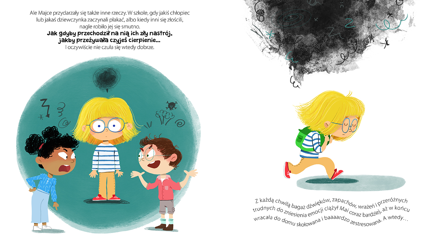 Pewnego ranka Maja wykrzyknęła na cały głos: „Nie chcę taka być!”. A wszystkim domownikom aż ścisnęły się serca, bo nie wiedzieli, co powiedzieć. Ach, trudno jest być tak bardzo wrażliwą osobą! Dziadek Tomasz rozumiał to najlepiej i zawsze wspierał ukochaną wnuczkę… I właśnie tego dnia w niezwykłych okolicznościach Maja dowiedziała się, że jej ponadprzeciętna wrażliwość tak naprawdę jest supermocą! Dzięki niej może widzieć, słyszeć i czuć więcej niż inni, a z czasem nauczy się czerpać z tego siłę i radość.