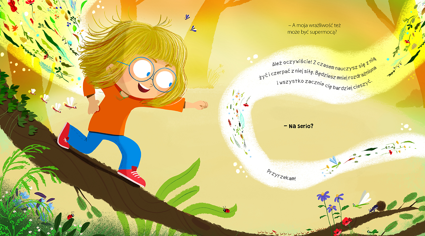 To ciepła i wspierająca opowieść dla dzieci i dorosłych, którym wysoka wrażliwość często doskwiera, ale też pozwala odczuwać mocniej i więcej, a przez to pełniej żyć.