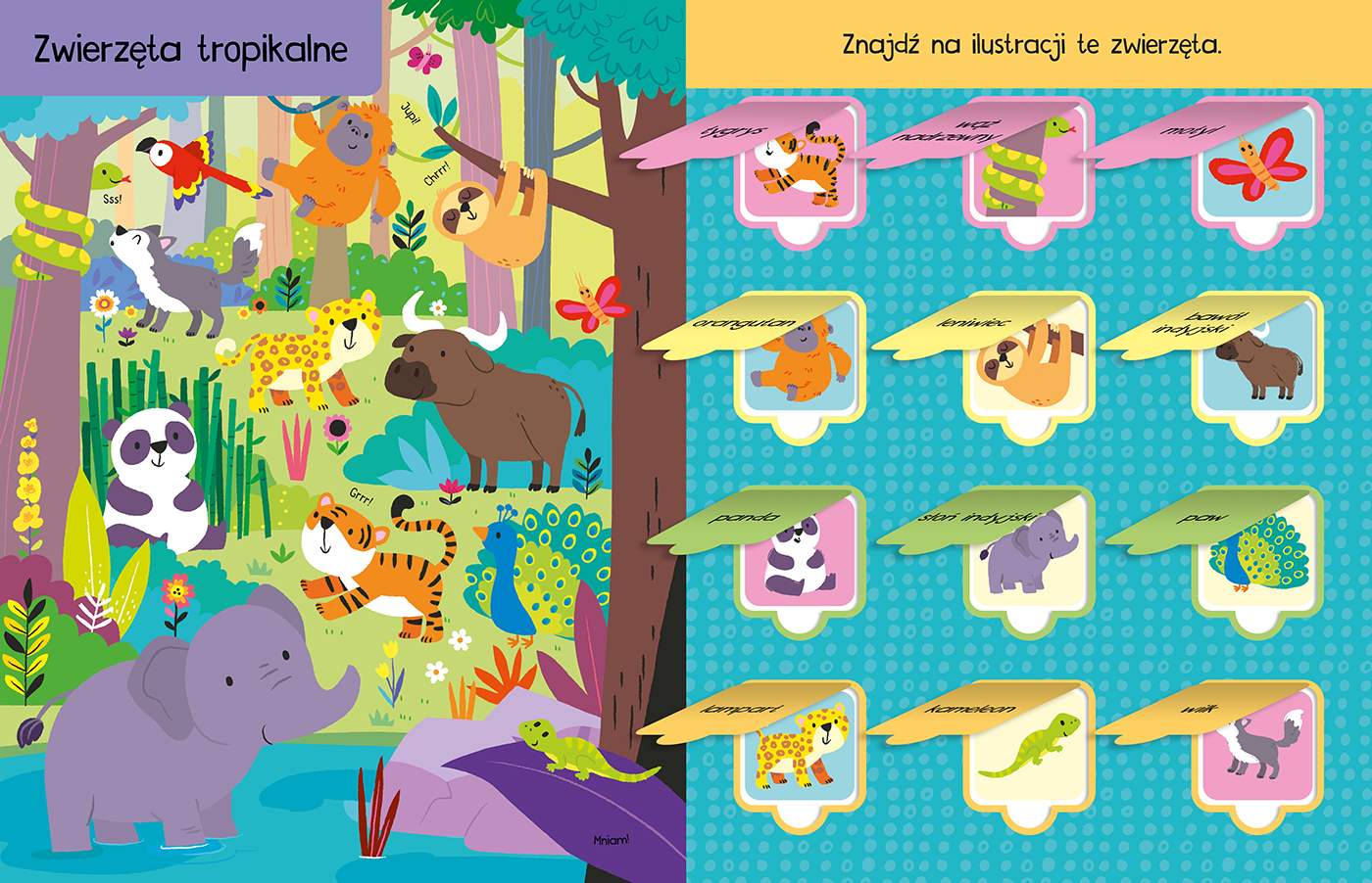 Mnóstwo okienek umieszczonych w tej książce z pewnością spodoba się małym odkrywcom, którzy będą poznawać zwierzęta, szukać ich i uczyć się! Informacje umieszczone na klapkach pomogą dzieciom utrwalić skojarzenia nazw zwierząt z obrazkami, dzięki czemu nauka będzie świetną zabawą.