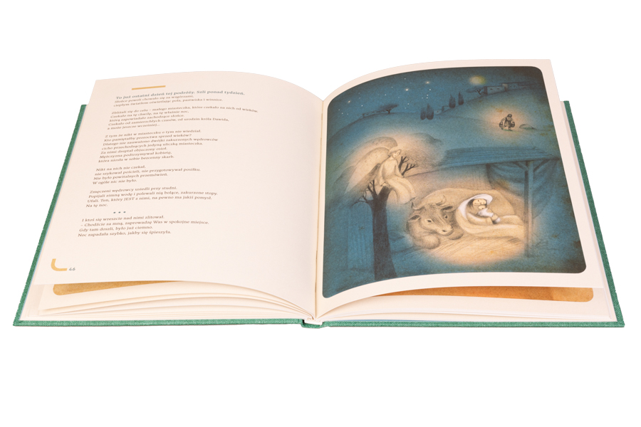 z Noem patrzącym na ciemne wody potopu, z mamą Mojżesza ukrytą w trzcinach Nilu, z uczniami płynącymi łodzią, z Janem Chrzcicielem siedzącym przy ognisku na pustyni. Są blisko. Ich historie dzieją się teraz, nie przed wiekami, to nasze historie. Dzisiaj słuchamy ptaków z rajskiego ogrodu, wybieramy nie ten owoc, idziemy walczyć z tym, co nas przerasta, boimy się spotkania z kimś, kogo oszukaliśmy, zapominamy, dokąd płyniemy i z Kim… Patrzymy na ognisko w ciemności, próbując odnaleźć Tego, który JEST”.