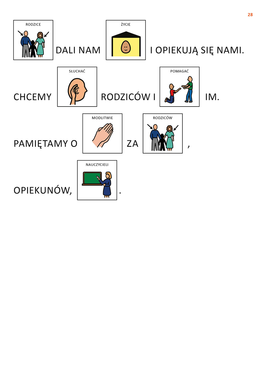Z kart pracy można korzystać zarówno podczas katechezy szkolnej czy parafialnej, jak i w domu. Dzięki zastosowaniu w nich znaków PCS i zróżnicowaniu poziomu trudności zadań nadają się one dla dzieci i młodzieży z różnym stopniem niepełnosprawności, o różnych potrzebach i umiejętnościach. Są one również dobrym sposobem na powtórzenie czy utrwalenie wcześniej pozyskanej wiedzy. To gotowa propozycja zajęć, podczas których katecheci, duszpasterze lub rodzice pracujący z osobami ze specjalnymi potrzebami edukacyjnymi i trudnościami w komunikowaniu się mogą podjąć tematy związane z fundamentami naszej wiary.