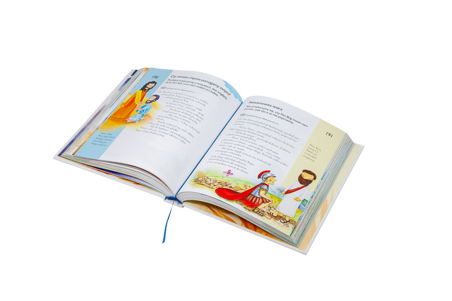 Na kolorowych stronach tej książki znajdziemy 365 rozważań i modlitw – tyle, ile jest dni w roku! Taki układ zachęca dzieci do systematycznej modlitwy i lektury Pisma Świętego, ponadto sprawia, że mali chrześcijanie z zaciekawieniem sięgają po kolejny temat (wg kolejno ponumerowanych fragmentów lub korzystając z końcowego spisu haseł).
