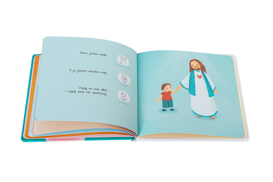 Ta książeczka to pierwszy modlitewnik malucha. 12 krótkich modlitw, które zachęcają dzieci do wielbienia Boga nie tylko słowami, ale i za pomocą gestów, czyli radosnym sercem i całym ciałem.