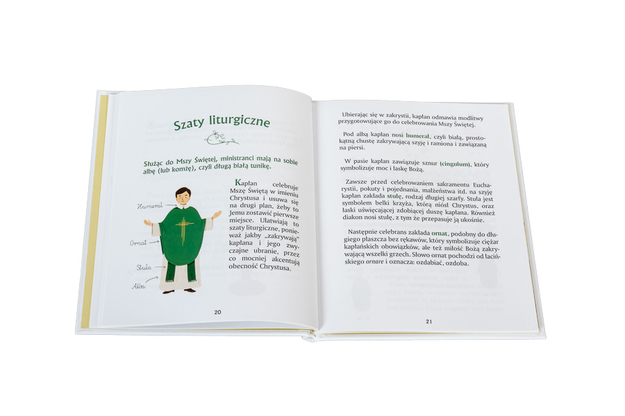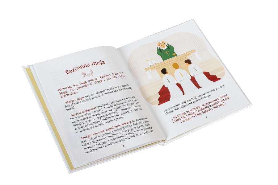 Tę ilustrowaną książeczkę dedykujemy ministrantom (i wszystkim chłopcom, którzy pragną nimi zostać, a także dziewczynkom przygotowującym się do tej pięknej posługi w Kościele). Na jej 64 stronach znajdą oni wiele ciekawych informacji dotyczących służby liturgicznej, paramentów i naczyń liturgicznych, Mszy Świętej i tego wszystkiego, co młody sługa ołtarza wiedzieć powinien.